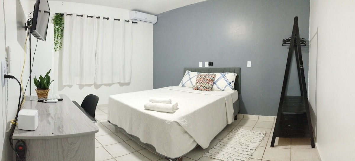 Mertua yang nyaman dengan dekorasi en - suite dan bertema. Lokasi yang sangat baik di selatan Joinville, dekat dengan toko roti, supermarket dan restoran, akses mudah ke BR 101 dan kota Araquari dan São Francisco do Sul. Lencois, selimut dan handuk putih. Kulkas mini, internet, dan TV. Garasi tertutup untuk 01 mobil. Keamanan dengan sistem alarm dan pemantauan kamera eksternal. Jauh dari pusat kota 7,5 km atau 15 menit naik mobil.
