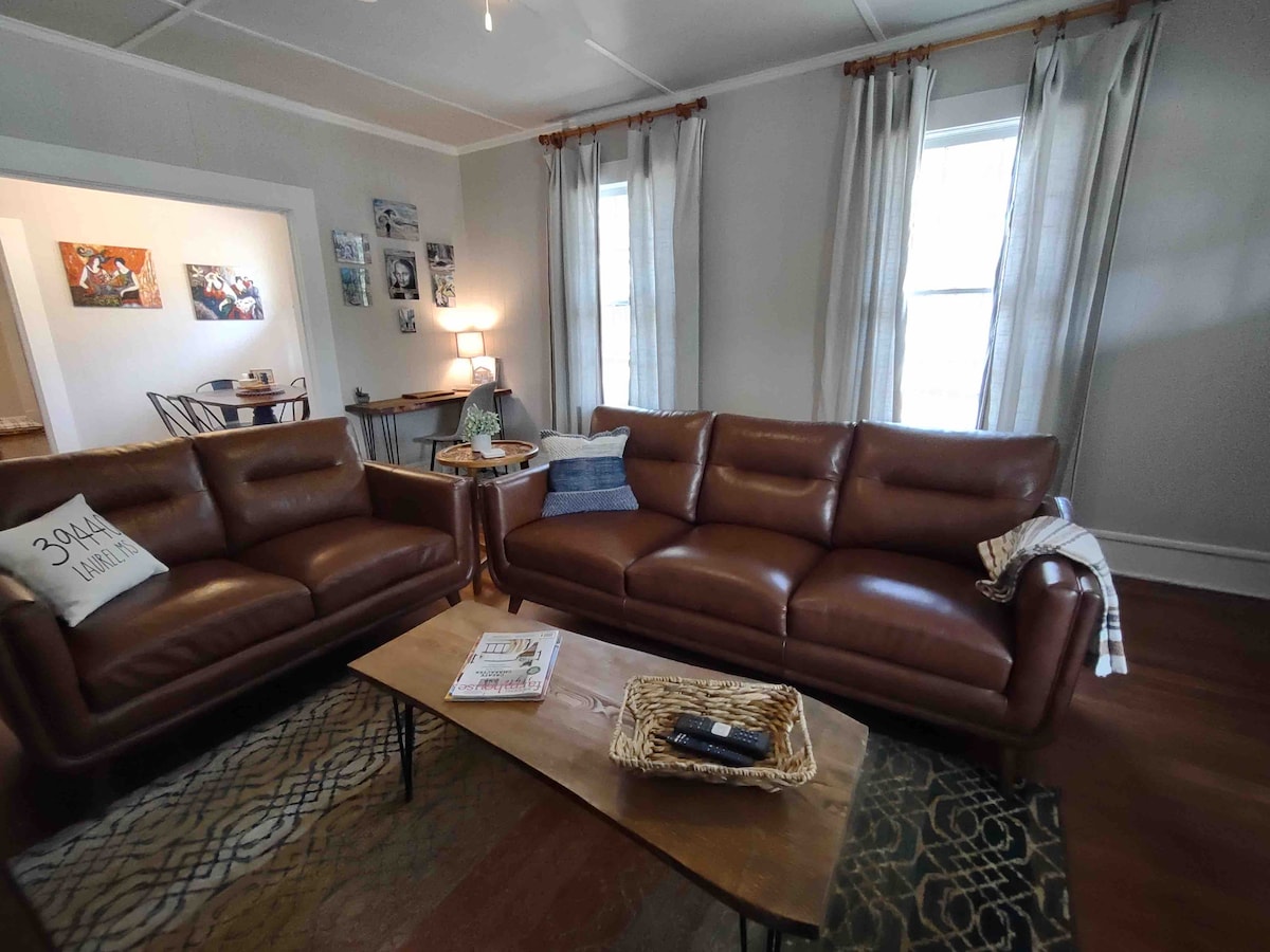 Selamat datang di Reunion House Unit B—bungalo menawan tahun 1930-an di pusat kota Laurel. Terletak di Short 7th Ave antara Warehouse dan Historic Downtown Districts, dan tepat di seberang HGTV's BirdDog Cafe. Nikmati pesona Selatan dengan teras depan bersama, pintu masuk belakang pribadi, dapur lengkap, dan ruang tidur yang nyaman. Berjalanlah ke toko dan restoran pusat kota dan bersantai di tempat peristirahatan bergaya rumah pertanian yang hangat ini. Pesan penginapan Anda dan nikmati pengalaman terbaik di Laurel!