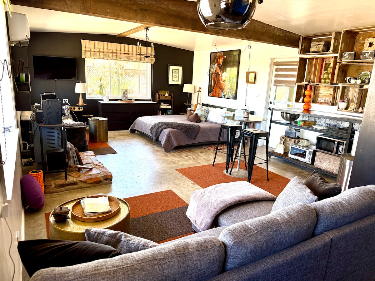 Super Hosts for years! JTNP desert studio built on boulders, GORGEOUS views 1. AIRBNB/SB County Permit CESTRR-2024-03818 2. Very modern desert retreat, 2 decks, A+ views/boulders! (400sqft w full kitchen w reverse osmosis &more) 3. Start hiking/bouldering immed below studio & main house 4. 5>to village; 10 min>JTNP 5. NO ALLERGIES 4 U! NO PETS 4 U! but NO SPA sorry! 6. NO SMOKING OF ANY KIND INSIDE/ON THE DECKS OR NEAR PROPERTY 7. Keep SHOES outsde GH (LEAVE NEAR FRONT DOOR)better!