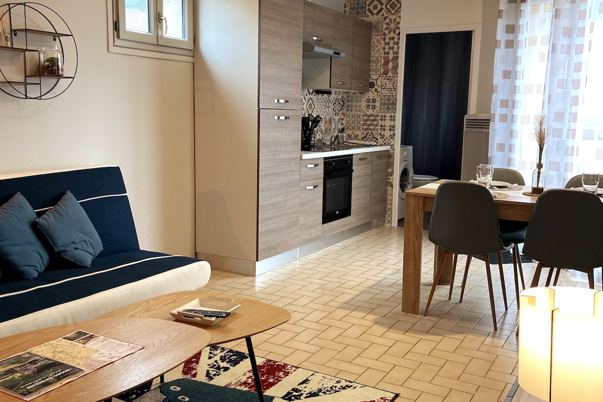 Apartemen (di satu lantai) berada di lantai 1 rumah (pusat kota berjarak 100 m). Anda akan memiliki 2 kamar tidur terpisah masing - masing dengan tempat tidur king, ruang tamu dengan tempat tidur sofa, dapur, kamar mandi dengan kamar mandi dan toilet serta toilet terpisah. Box adsl, TV, Netflix, kopi dan teh. Taman bucolic dan parkir pribadi.