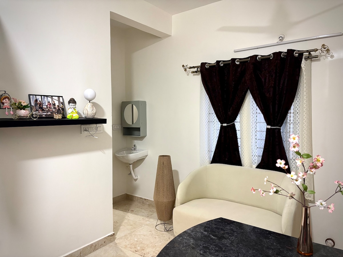 Selamat datang di flat 1 - BHK kami yang baru direnovasi dan luas, ideal untuk pasangan dan keluarga yang mencari kenyamanan dan kemudahan. Kamar tidur ini menawarkan tempat tidur queen dan kasur ortopedi lembut untuk tidur malam yang nyenyak. Bersantai di ruang tamu besar dengan Smart TV 43 inci, WiFi secepat kilat, dan area kerja khusus. Dilengkapi dengan kamar mandi super bersih yang dilengkapi dengan perlengkapan dasar. Dapur berfasilitas lengkap mencakup bahan - bahan dasar, peralatan berkualitas tinggi, dan peralatan makan untuk petualangan kuliner Anda.