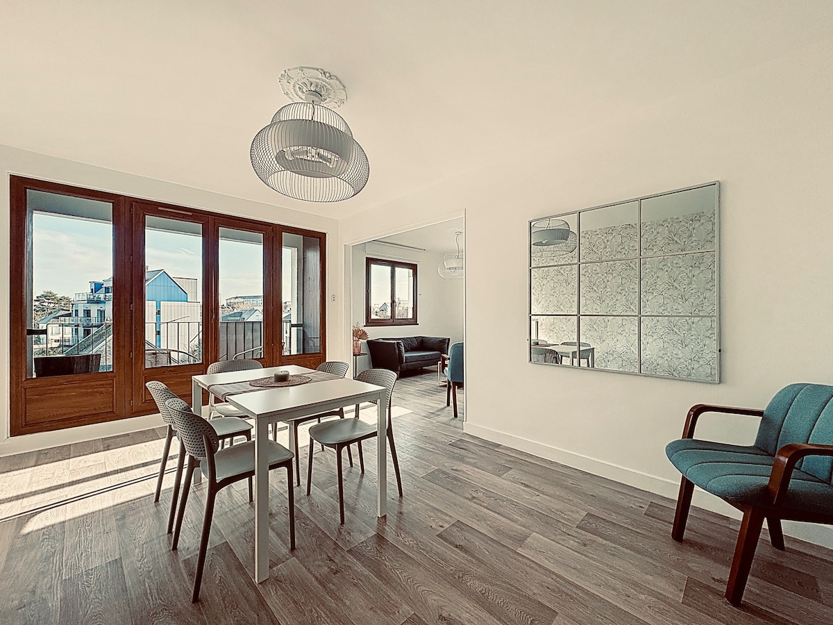 Pemandangan laut yang luar biasa dan di pelabuhan Granville dari balkonnya yang cerah. Flat dekat dari pusat kota, kasino, dan toko - toko...Tempat yang sangat bagus untuk berjalan - jalan, jalan setapak, kunjungan... Tuan rumah Anda bisa berbahasa Inggris