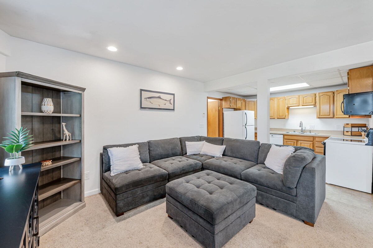 Selamat datang di apartemen Alaska kami yang nyaman! Rumah kami seluas 1000 kaki persegi hanya berjarak sekitar 10 menit dari pusat perbelanjaan dan bandara, dan dekat dengan jalur dan pantai terdekat. Hanya 3 menit ke terminal Feri Negara Bagian Alaska! Setelah seharian menjelajah, kembalilah dan bersantai di bak mandi air panas atau tidur nyenyak di tempat tidur king size Anda yang nyaman. Pesan penginapan Anda bersama kami dan rasakan keindahan Alaska. Romantis, ramah keluarga, dapur lengkap, baru direnovasi dan siap untuk Anda!
