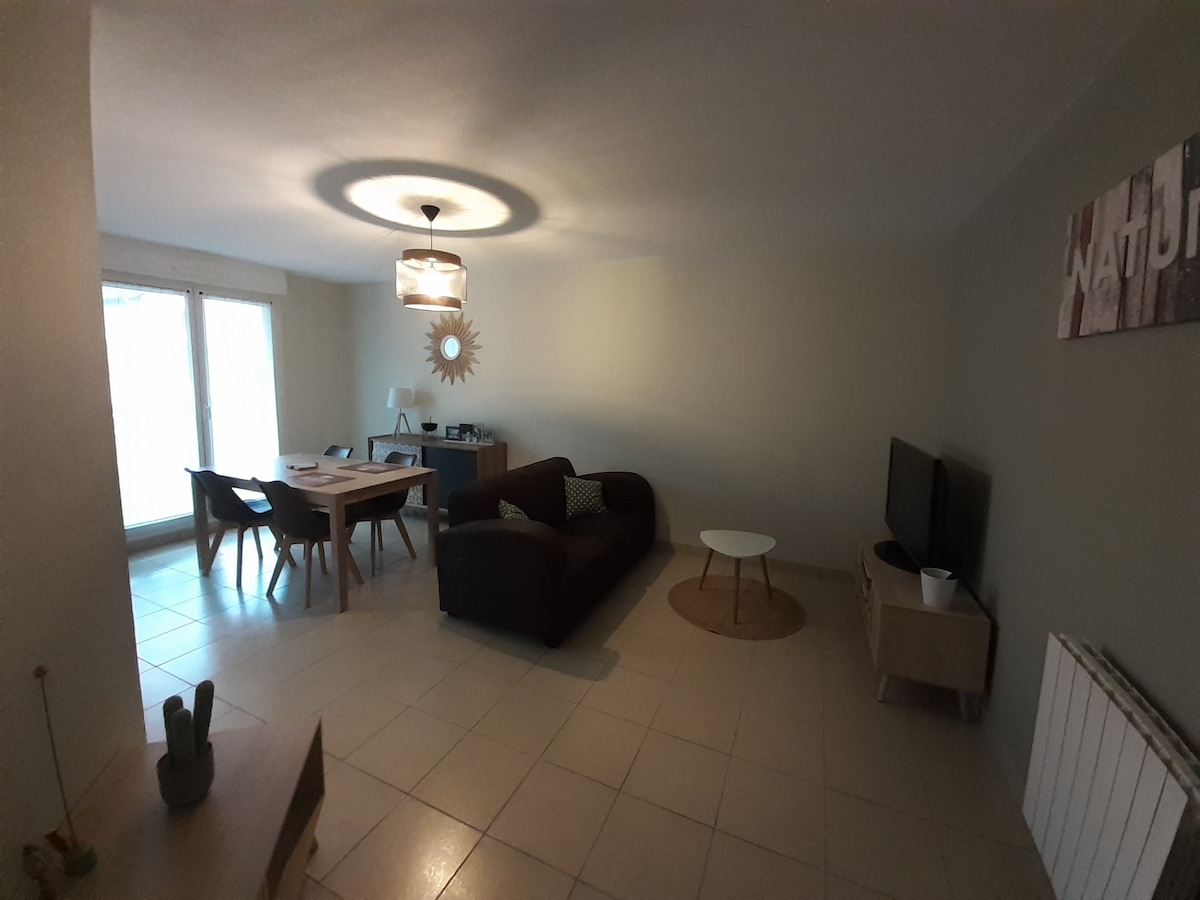 56m² new/ground floor villa/private terrace + furnished dining area/2 umbrellas/grass garden/free parking/fully AC/washer/dryer/bed 180x200/fast wifi/Netflix HD TV/Italian luxury lounge/full work desk/electric self - consumption/6 kWc solar installation on roof/3 stars "Gites de France" over equipped/very quiet residential area/4mn city center/bright veranda/pet welcome (except elephant)