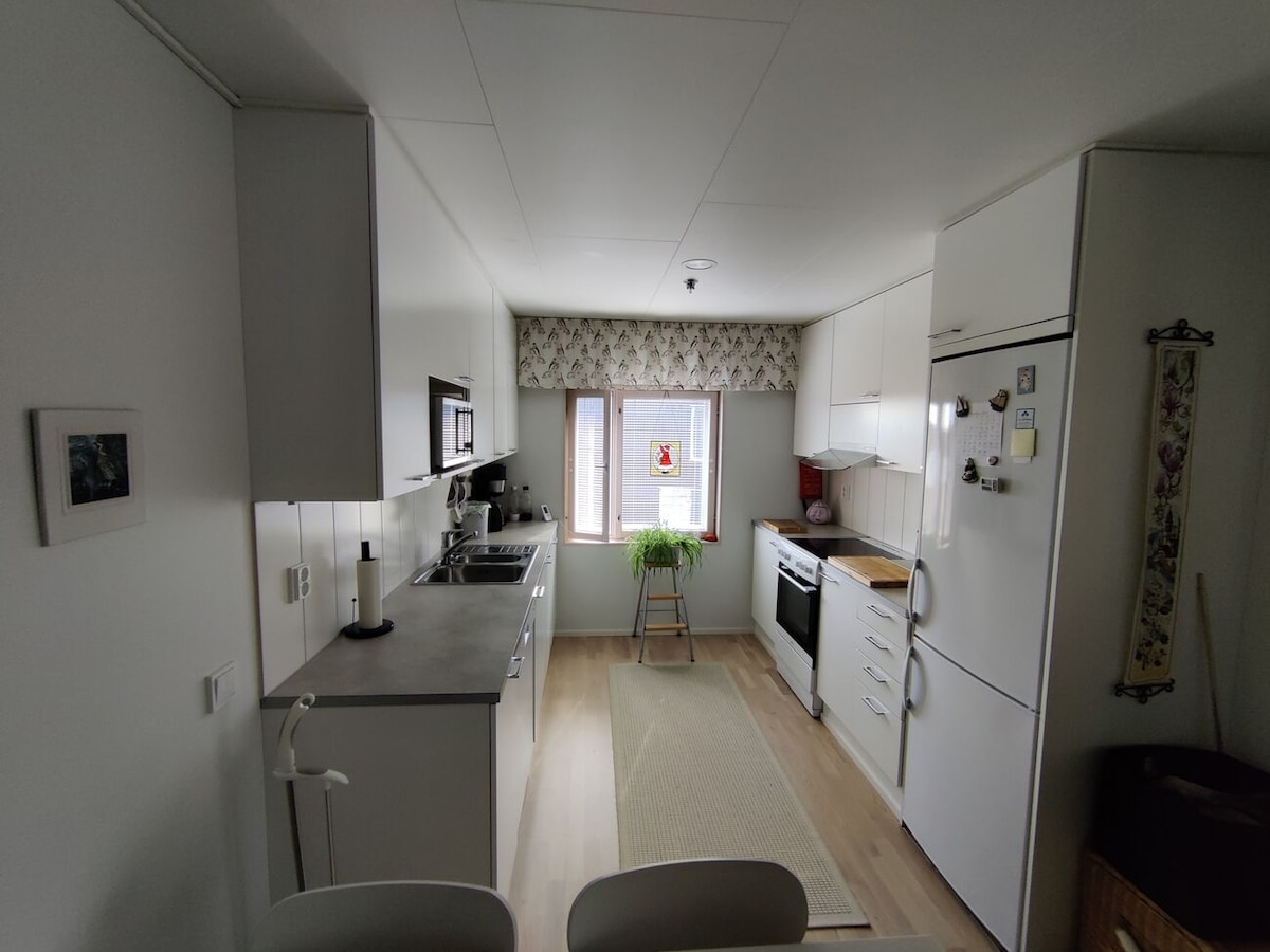 Selamat datang untuk menghabiskan satu malam atau lebih di apartemen dua kamar tidur yang nyaman. Apartemen ini berlokasi di daerah yang tenang, mudah dijangkau dengan mobil dan nyaman ke pusat kota dari halte bus terdekat. Tepat di sebelahnya adalah S - Market 24 jam, yang juga merupakan rumah bagi restoran makan siang Caffit. Anda akan memiliki akses ke seluruh rumah, serta area parkir Anda sendiri. Kamar tidur memiliki dua tempat tidur, dan kasur untuk tamu ketiga. Handuk dan perlengkapan tempat tidur disertakan.
