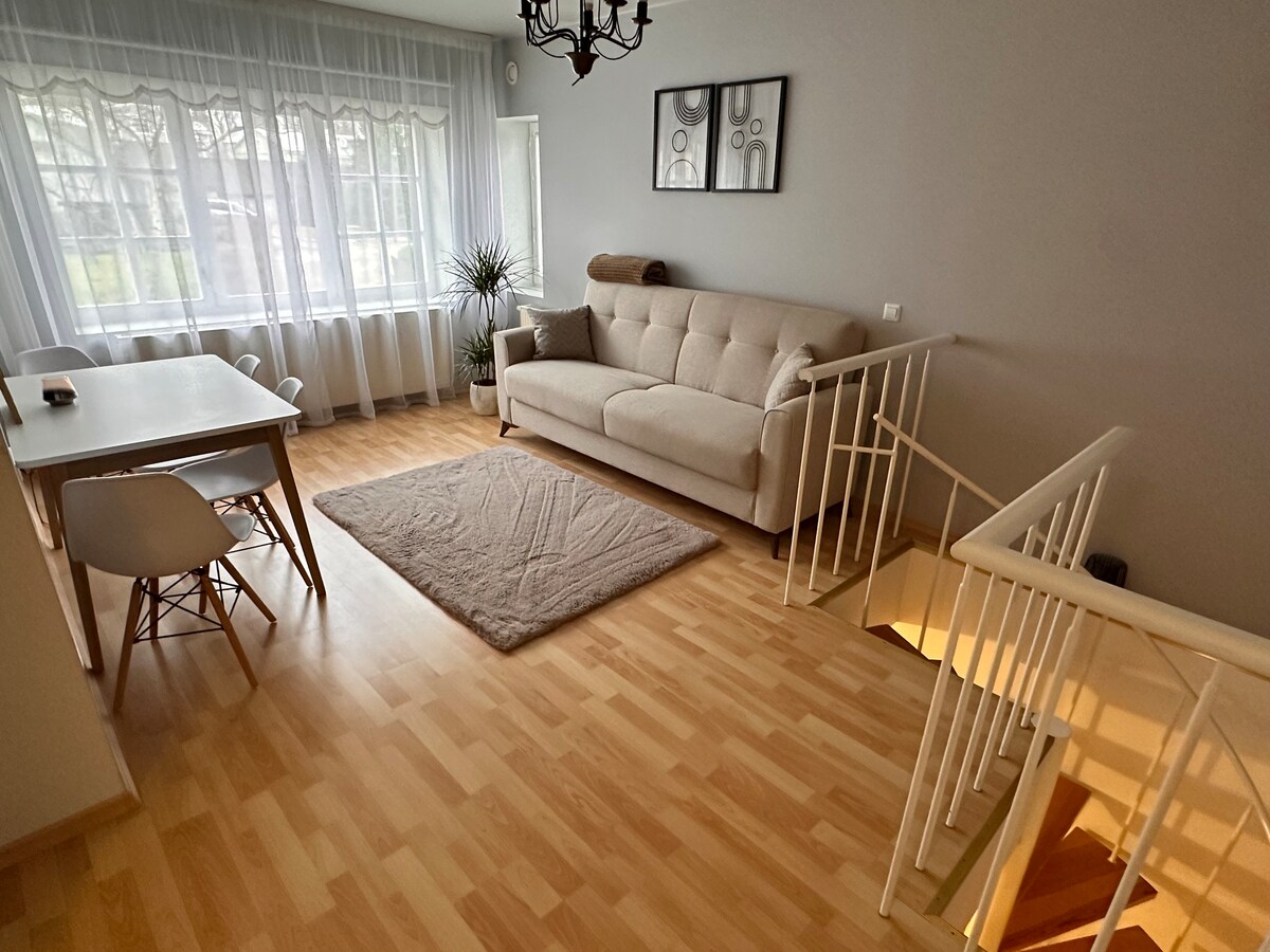Apartemen 2 lantai yang sangat tenang dan nyaman di pusat kota Kuressaare dekat Kastil Kuressaare. Satu tempat tidur besar untuk dua orang di lantai pertama dan tempat tidur sofa untuk dua orang di ruang tamu. Parkir gratis di halaman belakang yang aman. Lokasi yang sangat baik!