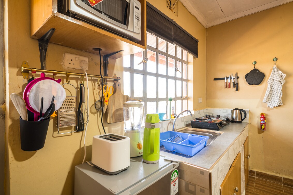 Kamar Leopard di Big 5 Apartments Kamariny, Iten dengan pancuran listrik panas, TV Satelit, Microwave, kulkas, blender, pemanggang roti.. Apartemen baru ini sedang dalam perjalanan ke jalur Kamariny yang terkenal dan 1 km dari Lornas High Altitude Training camp dan Kerio View Hotel. Tempat ini sangat tenang, dengan pemandangan yang indah dan berada di tengah alam. Anda akan tinggal tepat di sebelah beberapa juara lari kelas dunia dan dapat bersantai di taman, menggunakan meja pijat atau melakukan latihan di teras yang cerah.