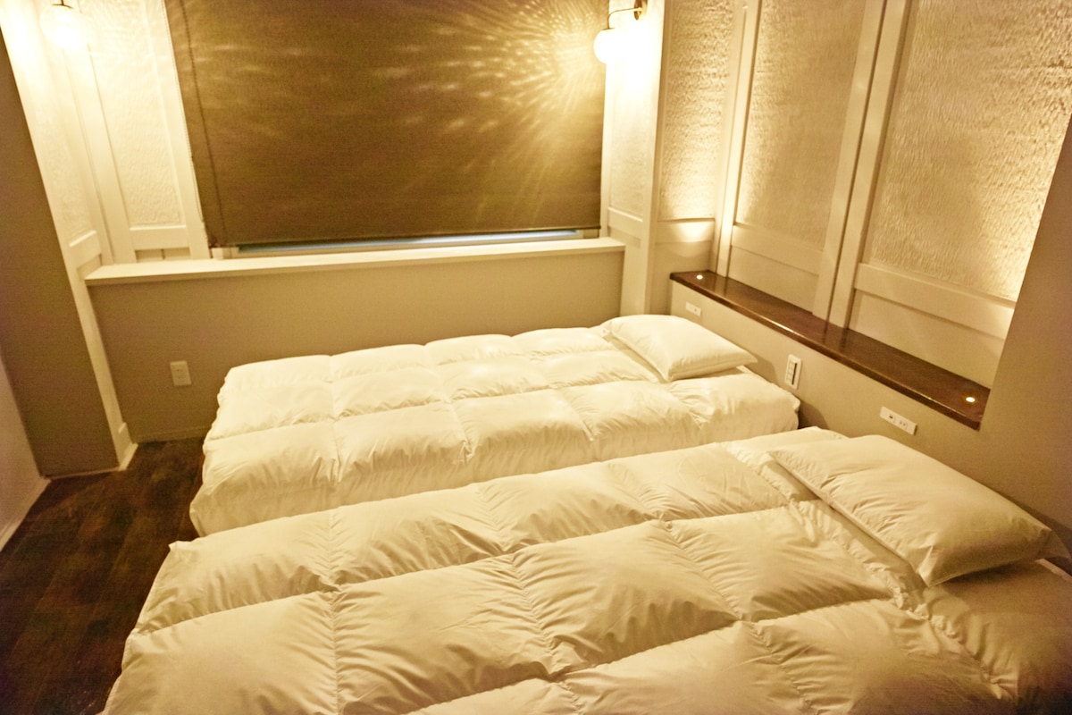 片原町商店街にあるシックな雰囲気のゲストハウスです。 片原町(とそれに続く兵庫町)商店街や日本一長いアーケード街には三越デパートやコンビニ(となりがセブンイレブン、2軒隣はデイリーヤマザキ)、飲食店、ドラッグストア等が揃っているので、雨でも気にせずお出かけできます! 施設の1階は喫茶店「八番館コーヒー店」となっております。 営業日:定休日なし(不定休の場合あり) 営業時間:6:00~18:00 ご宿泊中ほっと一息つきたいときやチェックアウト後の朝食として、ぜひお越しください♪ お部屋 ■1組限定の宿泊施設です。知らない人とシェアするような宿泊施設ではありません。 ■シングルベッドを4台備え、最大4名様がゆったりお休み頂けます。 ■ことでん「片原町駅」まで徒歩約3分!港や空港、他県へのアクセスに便利です。 ■専用の湯舟つきバスルーム、洗面所、トイレ、ドラム式洗濯乾燥機が室内にあります。 ■無料超高速 (10Gbps) Wi-Fiを使えるお部屋です。