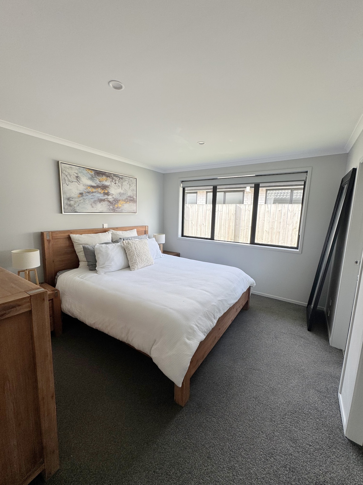 Studio Pantai Modern dengan pintu masuk ranchslider sendiri; garasi ganda integral memisahkan Studio dari rumah utama. Pintu di Studio mengarah ke garasi (dapat dikunci dari sisi Anda). Jika Anda ingin menyimpan apa pun yang Anda butuhkan untuk meminta ini, pintu juga terkunci dari sisi garasi. Studio memiliki langit-langit tinggi, kaca ganda, pompa panas/AC. 200 meter ke pantai, 1,2 km ke Fashion Island & Papamoa Plaza, mudah berjalan kaki 15-20 menit melalui reserve dengan jalur pejalan kaki/bersepeda. 6 km ke Bayfair. Lokasi yang tenang.