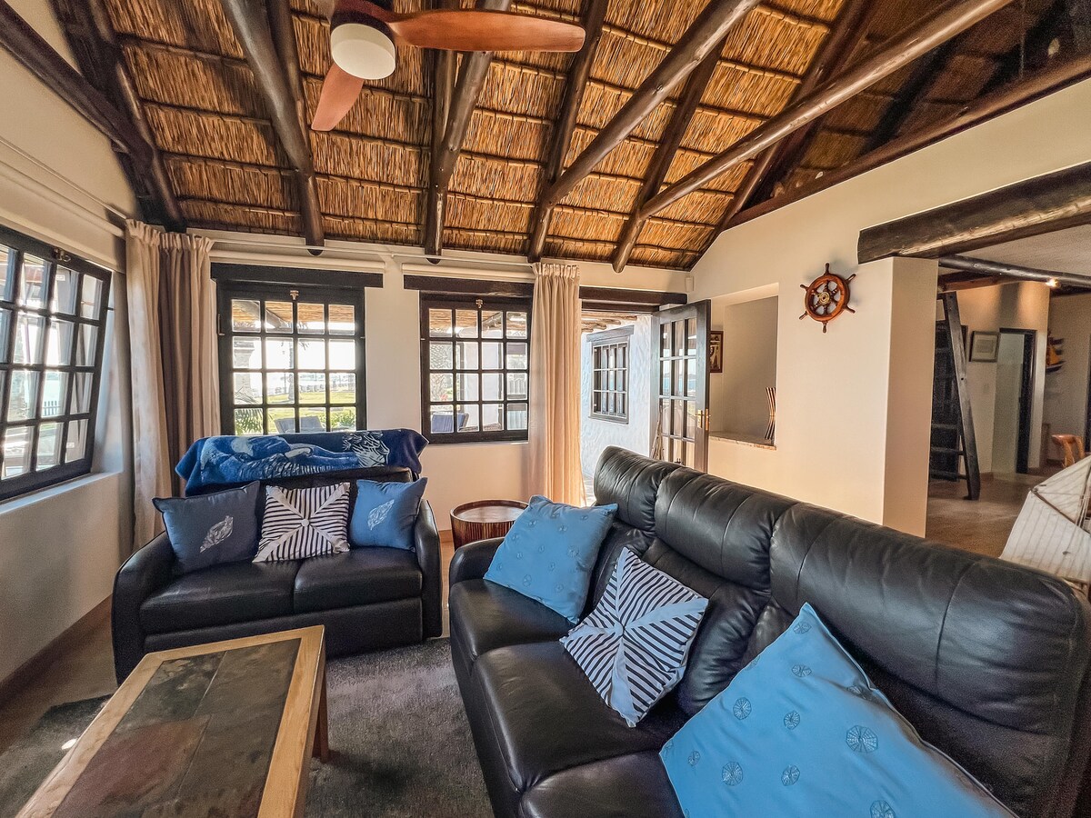 16 Dané Court is a unit on the second floor of a secure apartment complex, bordering the Swakopmund CBD, with a 7 minute walk from the centre of town. The style is best described as “French Weathered-Marine Open-Truss”, with spacious open plan living, dining room and kitchen areas. There is a main bedroom with en-suite bathroom and a second bedroom and bathroom. Its stove and refrigerator is complemented by a washing machine and tumble dryer in the 2x motor vehicle garages.