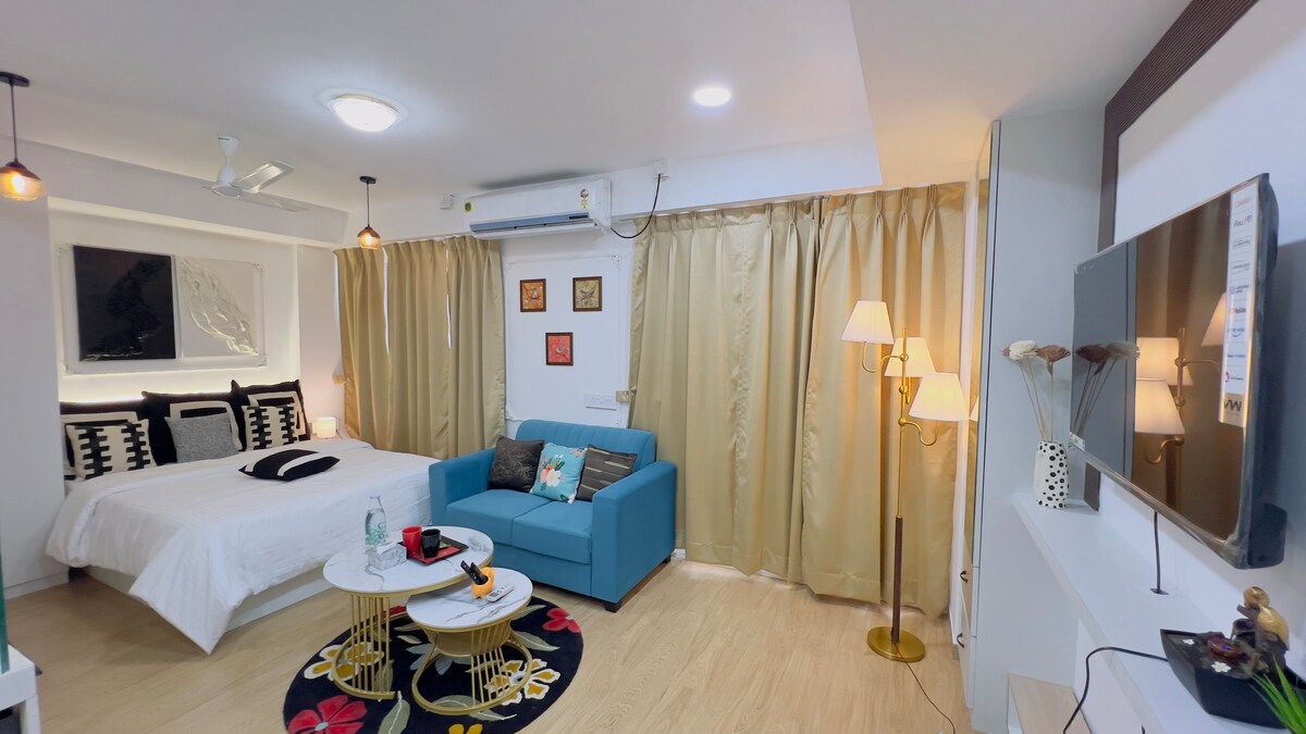 Selamat datang di Cozy Corner Studio oleh The Minimalist Stays — tempat kemewahan modern bertemu kenyamanan rumah di Viman Nagar, Pune. Nikmati pemandangan matahari terbenam yang menakjubkan dan saksikan pesawat terbang lepas landas dari landasan pacu Bandara Pune terdekat, tepat dari balkon Anda! Dirancang dengan cermat dengan estetika minimalis, studio ini menawarkan pencahayaan hangat, interior nyaman, dan suasana tenang — cocok untuk liburan yang damai atau liburan romantis. Bersantai, rileks, dan biarkan langit melukis malam Anda! ✨