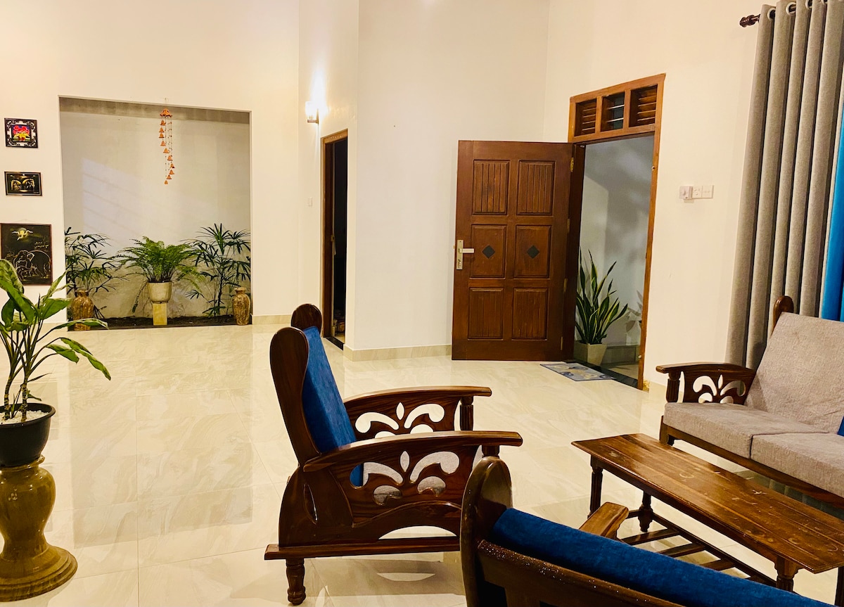 Terletak di lingkungan tinggal yang tenang dan murni di Sri Lanka, rumah kami menawarkan kenyamanan dan kemudahan modern. Nikmati area tamu yang luas, dapur lengkap, dan halaman depan yang rimbun cocok untuk bersantai. Bersantai dalam gaya. Pesan liburan damai Anda hari ini! Kami berada di bawah 1 jam dari Bandara (bia). Mudah Diakses melalui Southern Expressway (E01). 5 menit dari Persimpangan Kahatuduwa.