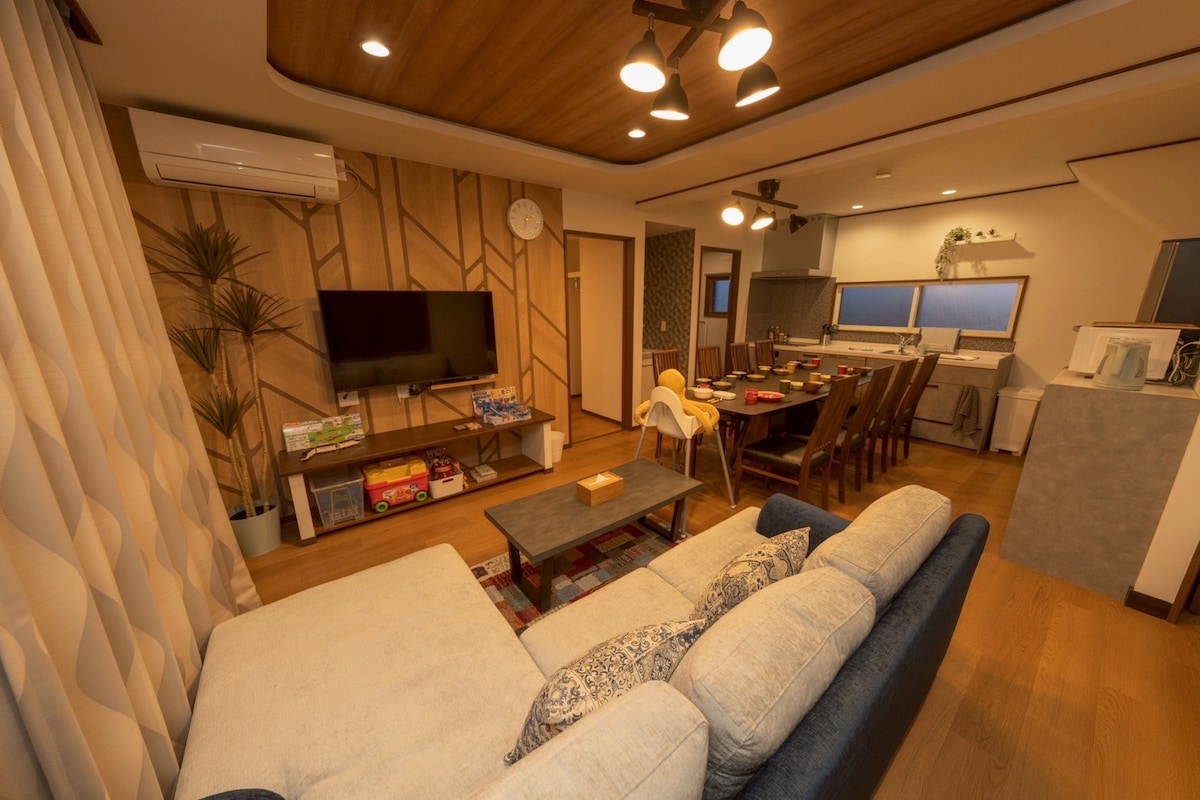 Pembukaan Mei 2025 Kamui 42 menit, Canmore 25 menit, Furano 62 menit, Daisetsuzan Ropeway 53 menit ★ 4LDK, 2 wastafel, 2 toilet, 1 kamar mandi, 1 dapur (dengan 2 kulkas) Parkir ★ luar ruangan untuk 2 mobil. Perlengkapan ★ bayi, 2 kursi bayi, dan mainan anak - anak Bersantai dan bersantai di “Kantarou & Monetarou's Inn” di Nishikagura, Asahikawa - diciptakan oleh pemilik “Kantarou & Monetarou's Main House” tercinta di Furano, yang terkenal dengan lingkungannya yang hangat dan ramah bayi/anak - anak. Cocok untuk keluarga dan rombongan!