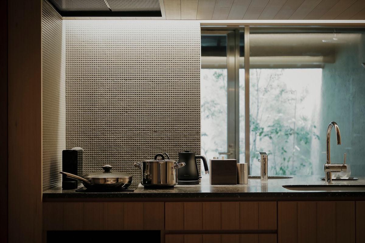Seperti yang ditampilkan dalam daftar NYTimes T, properti ini adalah "Kyomachiya ", rumah tradisional Jepang yang berusia lebih dari 100 tahun. Tempat ini telah direnovasi dari pabrik "Nishijin -ori" (tekstil tradisional Jepang). Lokasinya berada di Kamigyo Ward tradisional, beberapa menit berjalan kaki dari Istana Kekaisaran. Kami berkolaborasi dengan arsitek pemenang penghargaan di Ikken untuk merenovasi ruang ini, yang kini mengakomodasi kenyamanan kehidupan modern, sambil mempertahankan banyak struktur dan elemen asli dari masa lalunya.