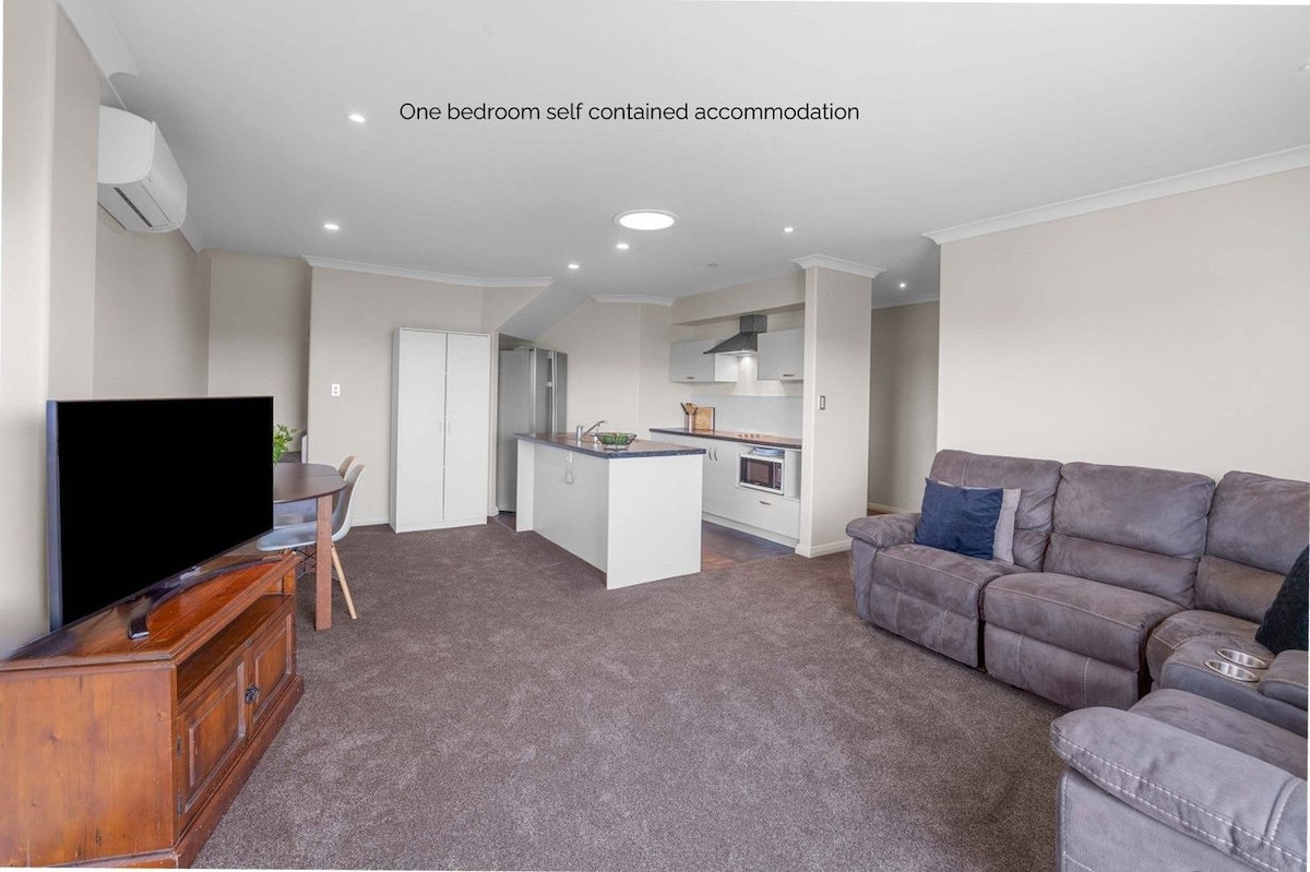 Bersantai dan bersantai di tempat yang tenang dan bergaya ini yang terletak di Pantai Waikanae. Apartemen ini berada di bawah properti yang sudah ada yang awalnya disiapkan untuk keluarga besar dengan pintu masuknya sendiri. Open plan living with office space, spacious bedroom with a Super king bed, bathroom that offer's a shower, sink, toilet and washing machine combined. Benar - benar mandiri dengan dapur lengkap. Sarapan disediakan yang terdiri dari Bacon, Telur, sereal, Buah, susu, Jus, mentega dan selai Teh, kopi.