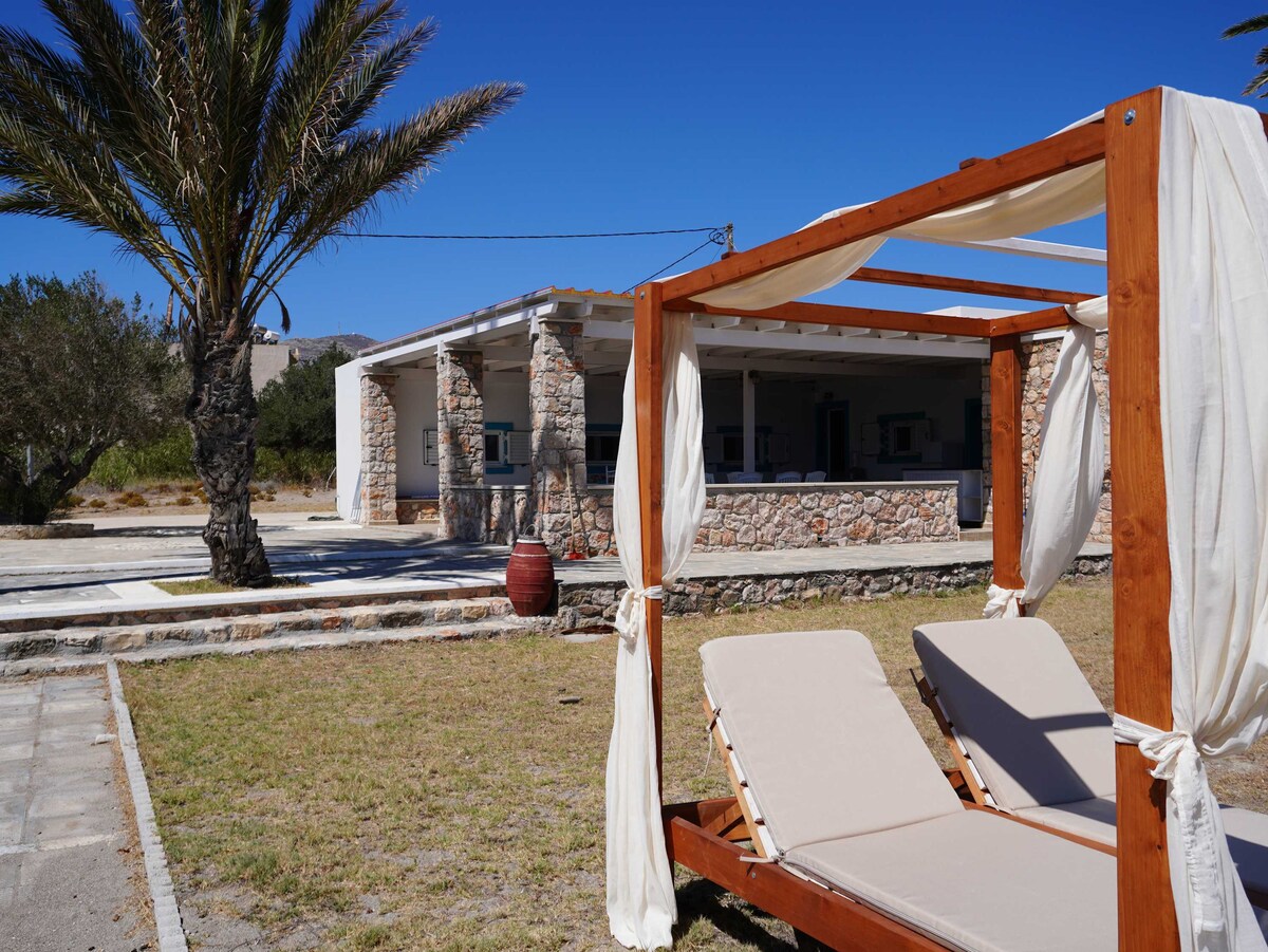 Rumah tradisional Karpathian. akhir - akhir ini direnovasi. Perpanjangan ditambahkan dengan suite utama yang berdekatan dengan rumah tua. Taman dengan pohon ara jeruk lemon dan pohon aprikot serta tanaman anggur, mengelilingi rumah. Parkir pribadi di depan rumah. Beberapa pantai terbaik di pulau ini berjarak 5’ dan 15’ berkendara. Tempat ideal untuk bersantai dengan segala kenyamanan. Tamu wajib mengirimkan kartu identitas atau paspor yang valid untuk verifikasi. Diperlukan sertifikasi vaksin atau tes Cepat.