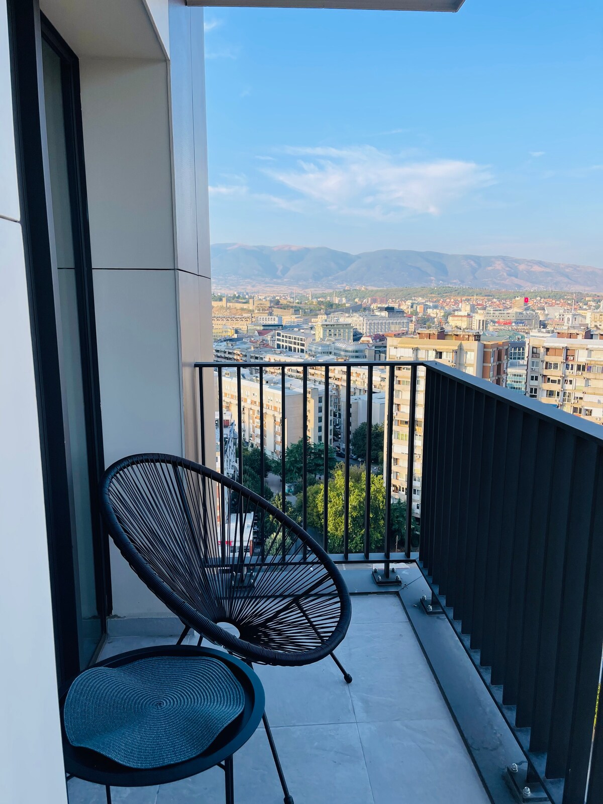 Enjoy a stylish experience at this centrally-located place This is BRAND NEW 60m2 apartment 5 minutes on foot from city park (stadium) and from the main square. Best possible location, very close to the lovely streets of Debar Maalo with many bars and restaurants. The apartment is with 1 bedroom with queen sized bed, and a living room with comfortable sofa bed + pull out bed Also 2 balconies from both rooms, one overlooking Vodno mountain. You can use it to drink a coffee or have a lunch
