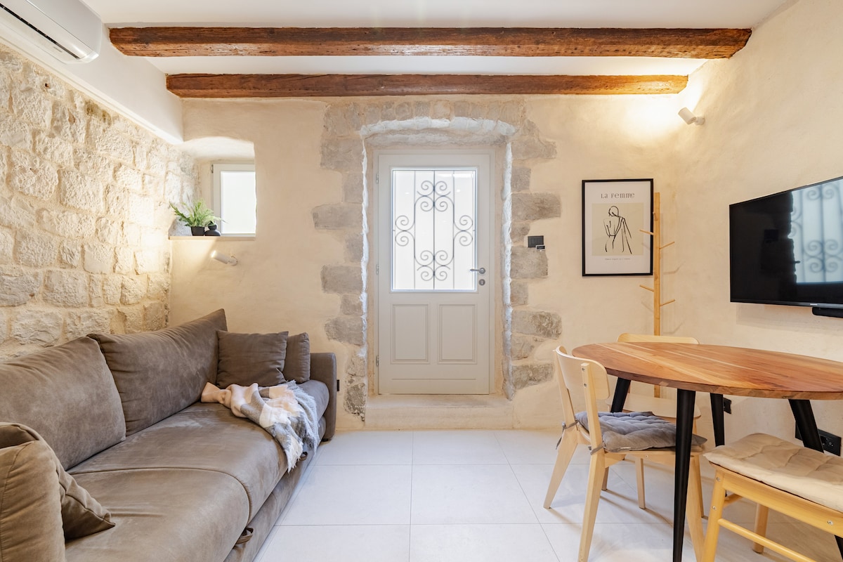 Habiskan liburan Anda di rumah batu tua yang baru direnovasi dan modern (studio 4 bintang) yang terletak di pusat Kastel Sucurac, desa Dalmatian kecil yang dikelilingi oleh rumah batu tua. Tempat ini terletak 4,3 km dari Split, Trogir 15 km, bandara 10 km,Marina Kastela 1 km. Satu rumah di tiga lantai menawarkan akomodasi untuk 4 orang. Idal untuk keluarga dan pasangan. Tamu memiliki pintu masuk terpisah dan seluruh rumah sesuai keinginan mereka. Di depan rumah terdapat pantai,restoran, taman anak - anak.
