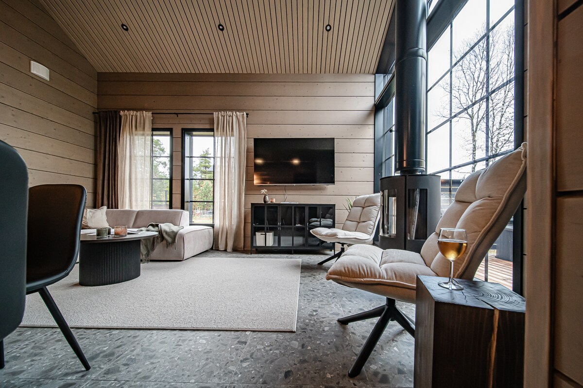 Villa Alveus menawarkan perpaduan yang tak terlupakan antara kenyamanan berkualitas tinggi dan pengalaman alam. + Kabin 3 kamar tidur modern dengan perabotan berkualitas tinggi untuk 6 orang. + Jendela besar di ruang tamu menawarkan pemandangan alam yang menakjubkan. Di musim dingin, aurora menerangi langit berbintang. + Jalur lintas alam dan ski yang luas di Taman Nasional Pallas - Yllästunturi berada tepat di depan pintu Anda + Layanan komprehensif Äkäslompolo hanya berjarak 2 km
