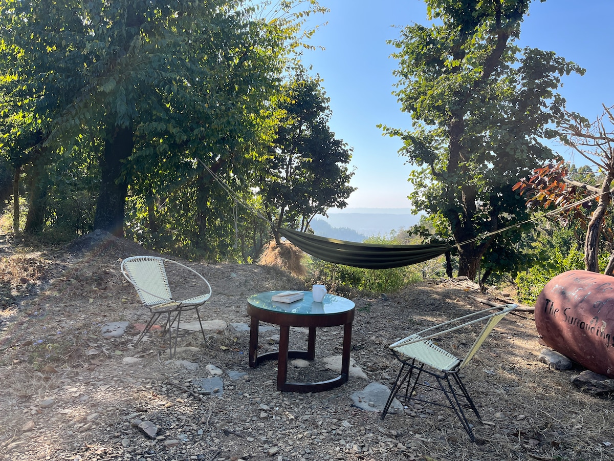 "Hustlers Den" terletak di lingkungan eksklusif Landour.. Pondok utama memiliki "Dek Logam" & bagian depan kaca 32 kaki yang terkenal yang memberi Anda pemandangan panorama pegunungan/hutan/DDun terbaik. Kami dikelilingi oleh Woodstock School dan terletak tepat di bawah Hanifl Center... Sister's bazaar berjarak 25 menit berjalan kaki sebentar..atau 10 menit berkendara Char Dukan berjarak 40 menit mendaki/berjalan kaki..atau 10 menit berkendara Clock Tower berjarak 30 menit berjalan kaki.. Mall Road berjarak 40 menit berjalan kaki atau 15 menit berkendara. Cagar Alam Jabarkhet 10 menit berjalan kaki atau 3 menit berkendara (1,2 km)