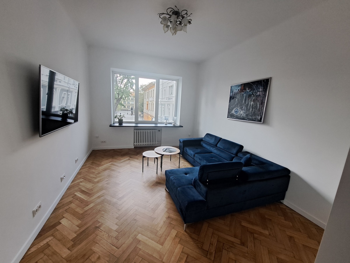 Apartemen 1 kamar tidur berperabot lengkap yang baru direnovasi di pusat kota Kaunas. Jarak Berjalan Kaki Semuanya! Jalan pejalan kaki utama Kaunas - Laisves dengan banyak toko, kafe, restoran, dan museum untuk Anda dalam jarak berjalan kaki kurang dari 5 menit. Kaunas Old town bisa dicapai dengan berjalan kaki - seperti arena Zalgiris atau pusat perbelanjaan Akropolis. ➜ CHECK - IN MANDIRI! ➜ Anda memiliki akses ke kunci kapan saja bahkan jika Anda tiba sangat terlambat.