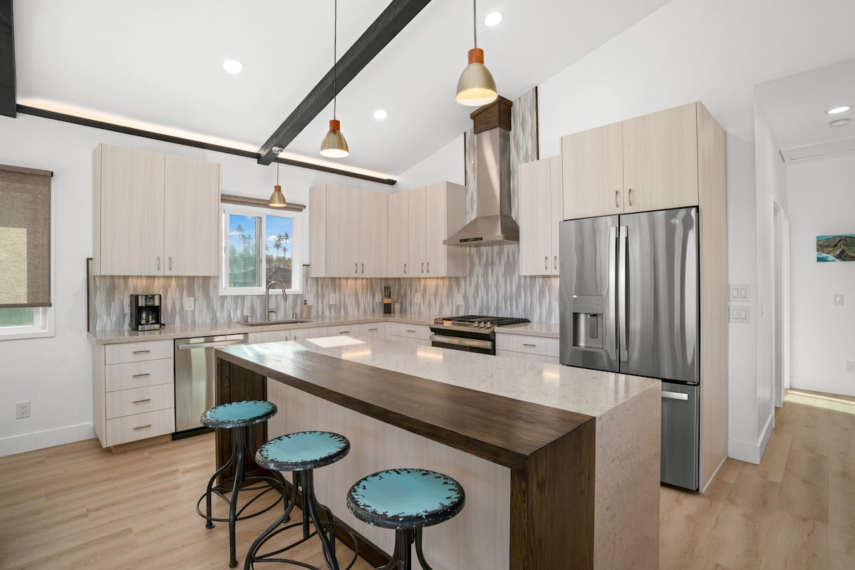 ** Rumah kami telah direnovasi sepenuhnya pada Oktober 2021!*** Nikmati Royal Coconut Coast di kondominium sudut laut dengan pemandangan 180 derajat! Terletak di sisi angin perdagangan Pulau Taman, Anda akan bersantai di bawah sinar matahari tropis dan angin sepoi - sepoi. Nikmati matahari terbit yang indah di lanai sambil menghirup kopi dan menikmati sarapan. Dengan pemandangan pantai berpasir sepanjang satu mil, jalur berjalan kaki Ke Ala Hele Makalae dan Samudra Pasifik, hidup di Aloha tidak pernah semudah ini.