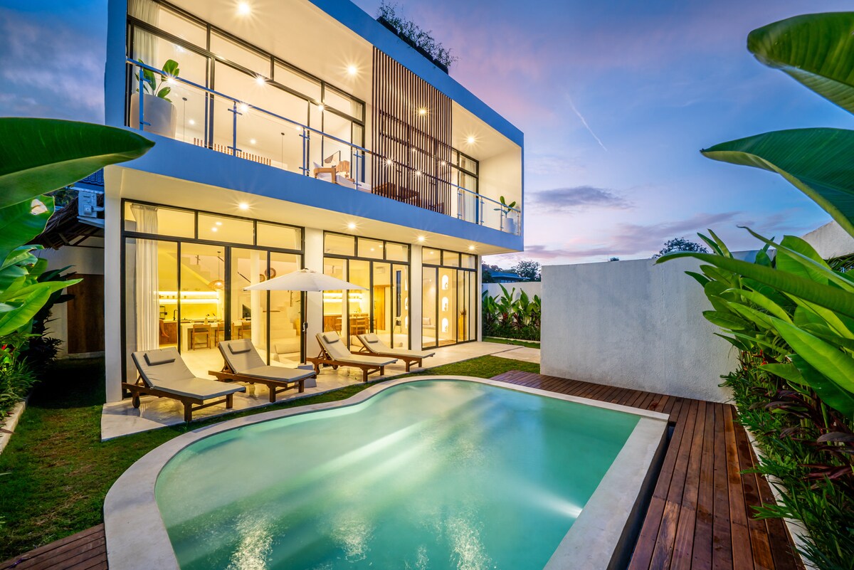 Vila Desainer Bergaya • Kolam renang pribadi dekat Canggu