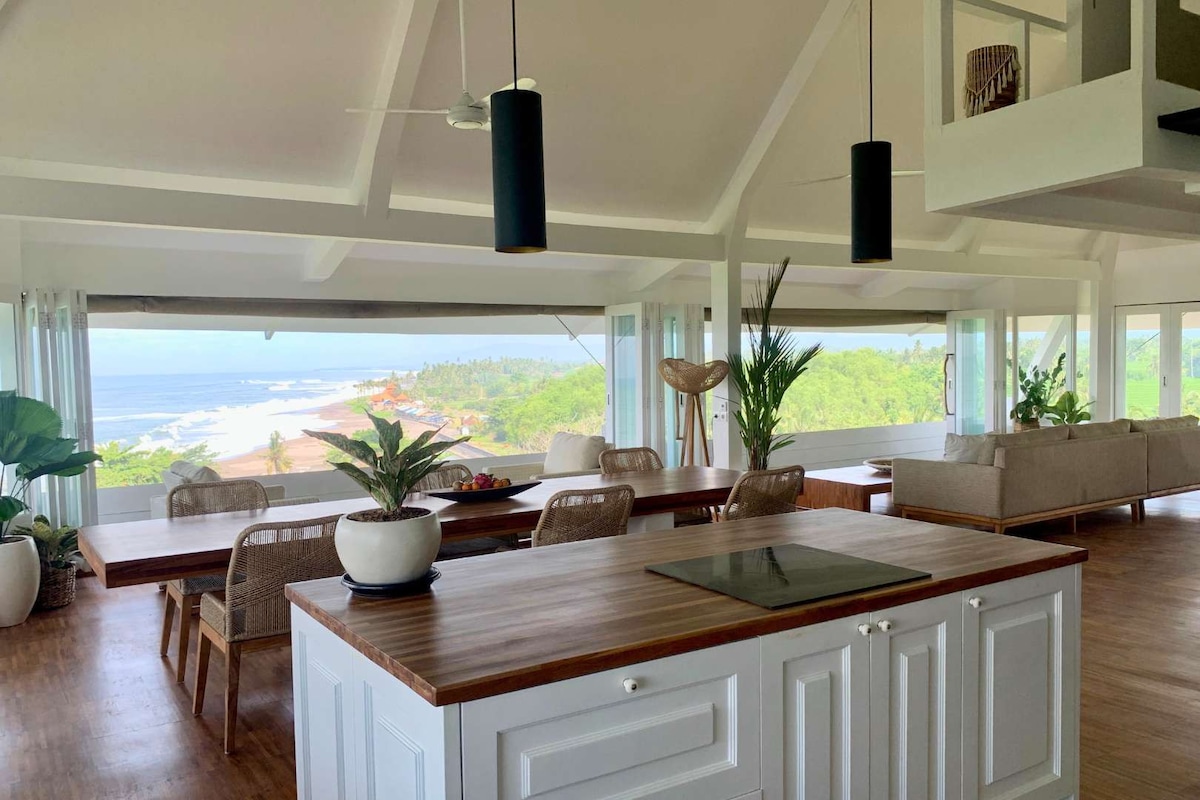 Bintang Angel Bay Beach House, penthouse 2 kamar tidur mewah kami Nazaré dinamai sesuai kota selancar paling terkenal di Portugal dengan ombak terbesar di dunia! Nazaré memiliki pemandangan panorama 270 derajat yang tak terkalahkan yang melintasi samudra, pantai, teras sawah, hutan, hingga ke utara pegunungan dan gunung berapi di cakrawala! Tidak ada yang lebih baik dari itu! Bangun dan berjalan ke pantai hanya dalam 30 detik. Dan semua hanya 20 menit berkendara ke pantai dari keramaian Canggu.