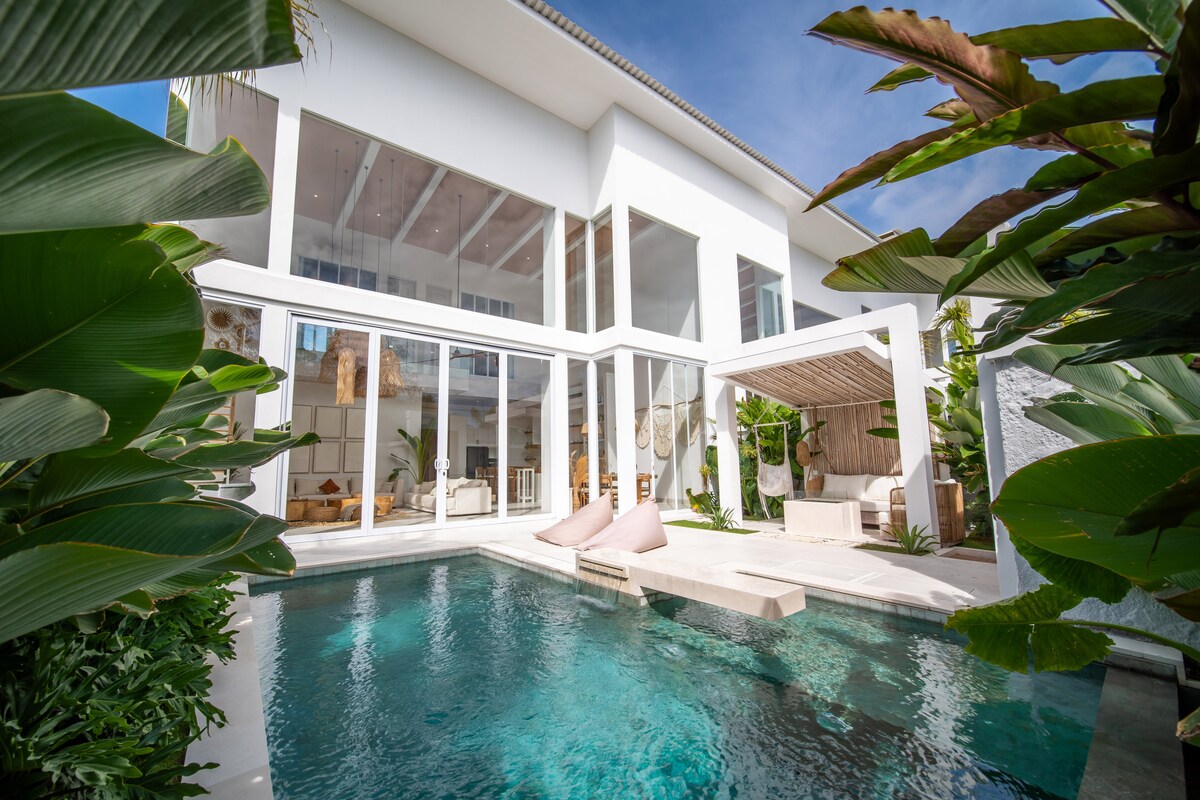 Villa ✨ Baru 2024 ✨ Berlibur ke Villa Palmora, tempat perlindungan yang tenang beberapa langkah dari pantai, kafe, dan kehidupan malam terbaik di Canggu! Sangat cocok untuk keluarga, pasangan, atau rombongan, oasis 3BR ini memadukan kemewahan modern dengan pesona tropis: 🌿 Kenyamanan Terbaik ✔️ Kolam renang pribadi 7,5x4,5 m dikelilingi kebun rimbun ✔️ 3 King Suites dengan bak mandi en - suite, AC, dan brankas Dapur ✔️ Gourmet (Peralatan Smeg, Nespresso, microwave, oven) Lokasi ✔️ Tenang di cul – de – sac yang tenang – tanpa kebisingan lalu lintas