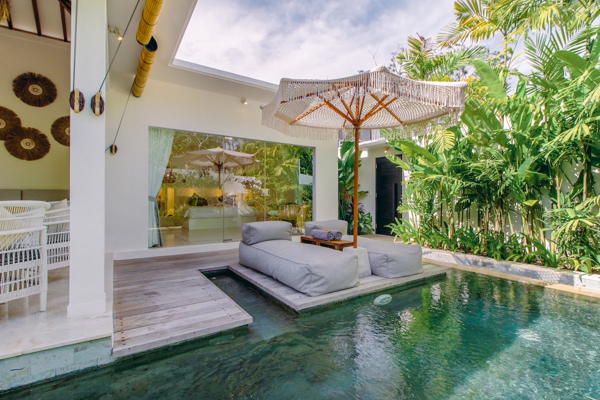 Vila pribadi satu kamar tidur yang berada di daerah Nyanyi yang baru berkembang dan tenang: - Kolam renang pribadi dengan area taman - Ruang tamu pribadi dan area makan - Dapur berfasilitas lengkap - Layanan concierge 24 jam untuk bantuan kapan saja - Kamar tidur ber-AC dengan tempat tidur berukuran 180 × 200 cm dan lemari pakaian yang luas - Kamar mandi semi - luar ruangan yang luas dengan bak mandi dan pancuran air panas dan dingin - Layanan kebersihan rumah 6 hari dalam seminggu - Pemeliharaan kolam renang dan taman dua kali seminggu