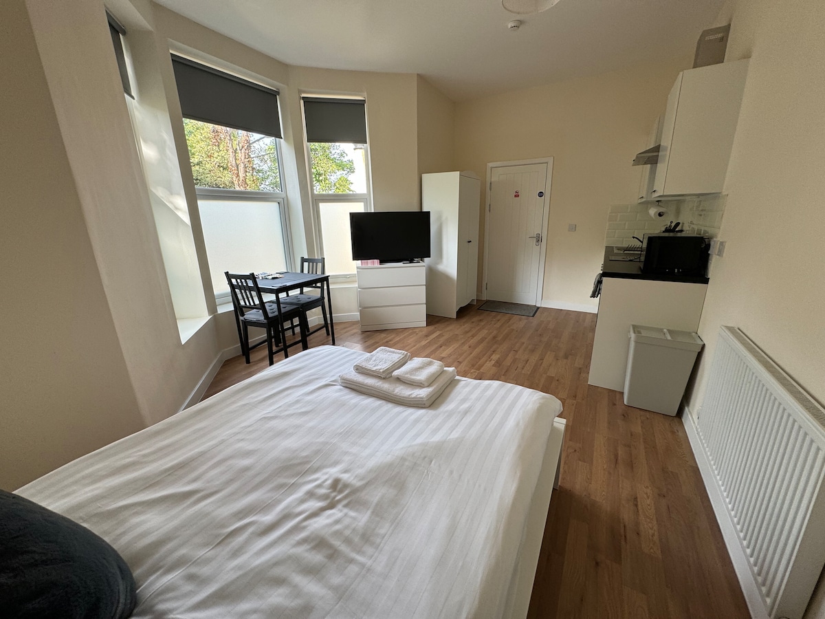 Kamar double, TV, area kerja, dan en - suite yang sangat besar