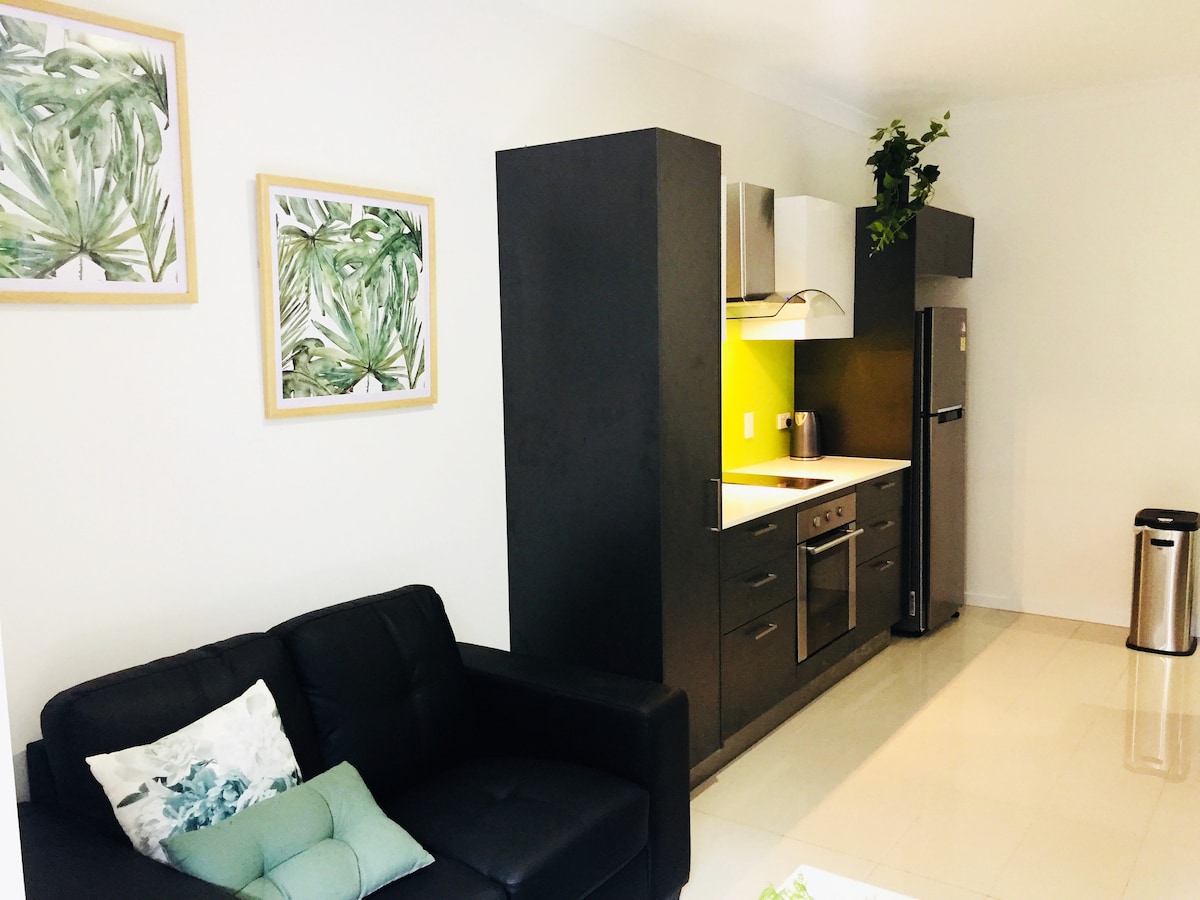 Selamat datang di surga taman langka Anda! Studio pribadi yang cantik dan lengkap terletak di atas kolam yang tenang. Desain arsitek, luas sepenuhnya terpisah dengan pintu masuk terpisah, langit-langit raking & cahaya alami. Oasis yang damai, dilengkapi dengan semua yang Anda butuhkan untuk masa inap yang nyaman & santai. 7 km dari CBD, berjalan kaki ke bus, kereta api, toko, kafe. 15 menit berkendara ke rumah sakit, QUT Tempat tidur nyaman, AC, WiFi, kamar mandi modern, dapur kecil, mesin cuci. Nikmati ketenangannya! TIDAK COCOK UNTUK ANAK DI BAWAH 13 tahun.