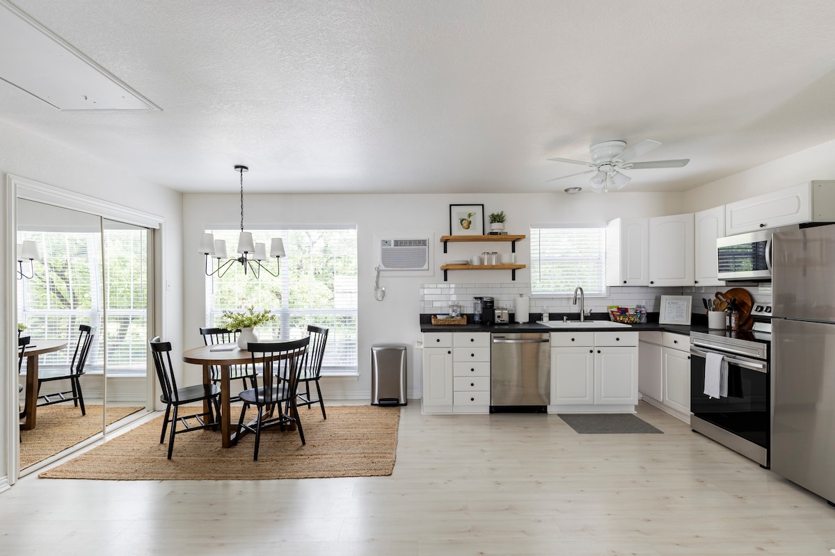 Bersantai di bawah rumpun pohon kemiri di tempat persembunyian yang damai di dekat I -20 dan I -35 ini. Berkendara 15 menit ke pusat kota atau barat 7th, 10 menit ke Magnolia Ave, dan 20 menit ke Stockyards. Dirancang dan direnovasi secara profesional, rumah ini mencakup dapur besar yang lengkap dengan keran air reverse osmosis dan bar teh dan kopi gratis. Akhiri hari Anda dengan api unggun dan s'mores di bawah lampu senar dan tanaman merambat berbunga di halaman belakang.