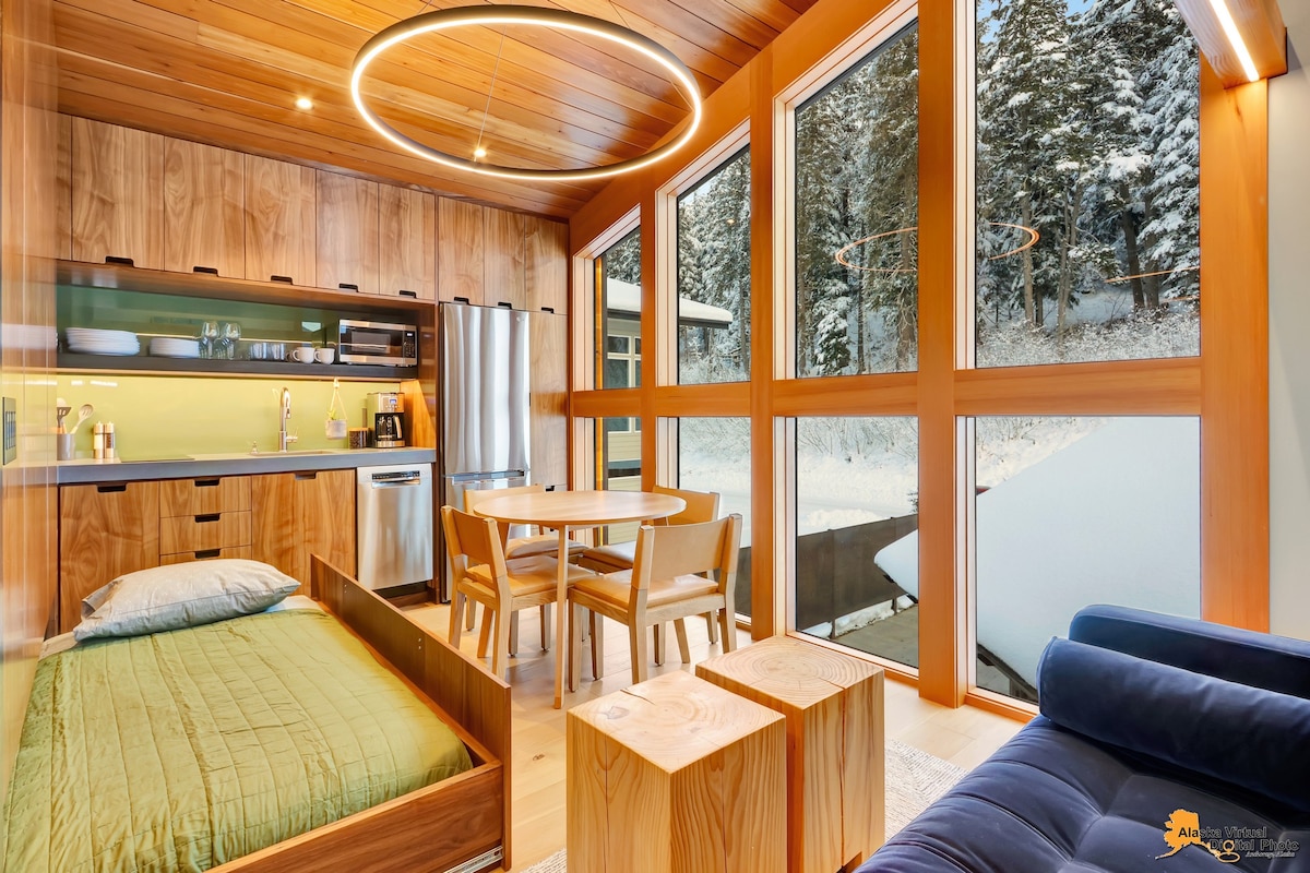 Elegan dan dirancang dengan cermat, tempat peristirahatan Girdwood seluas 415 kaki persegi yang nyaman ini memiliki karya kayu artisan yang menakjubkan dan pemandangan pegunungan yang tenang yang menghadap ke Lembah Girdwood. Hanya beberapa langkah dari Alyeska's Chair 3, Challenge Alaska, dan Sitzmark, lokasinya tak terkalahkan. Di dalam, setiap detail mencerminkan keahlian dan kenyamanan—dari finishing kayu yang hangat hingga penggunaan ruang yang cerdas. Berjalanlah ke tempat favorit lokal seperti Jack Sprat dan The Bake Shop, lalu kembali ke tempat persembunyian gunung Anda yang tenang.