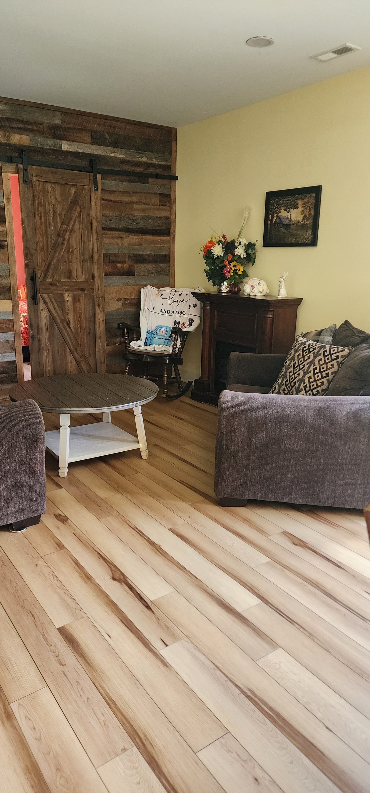 Rumah kecil bergaya peternakan kecil 2 kamar tidur yang hangat dan nyaman dengan perapian