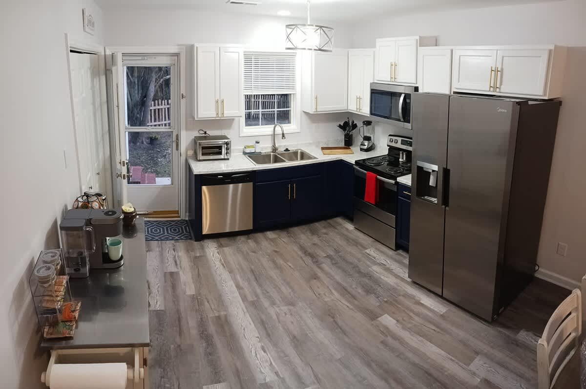 Nikmati pengalaman menginap Anda di Mount Olive di rumah yang nyaman dan baru direnovasi ini! Setiap aspek interior telah direnovasi sepenuhnya dan menampilkan peralatan dan perlengkapan baru di seluruh rumah. Lingkungan tinggal yang tenang ini berada dalam jarak berjalan kaki ke kampus University of Mount Olive dan berkendara singkat ke kota Goldsboro. Rumah ini cocok untuk masa inap jangka pendek atau jangka panjang dengan Wifi, mesin cuci/pengering, dan dapur lengkap. Parkir berlimpah dengan ruang untuk 3 kendaraan.