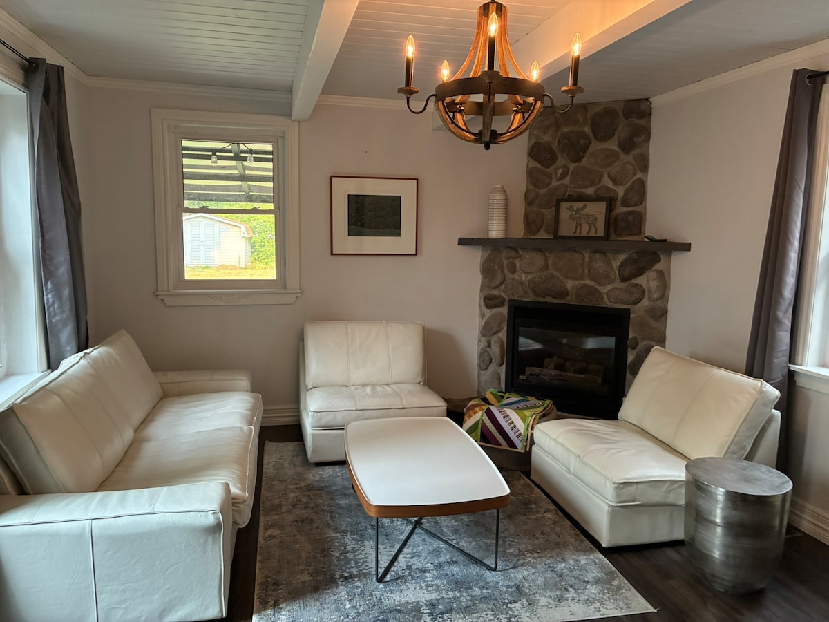 Fully furnished upstairs apartment with two queen bedrooms, in downtown Englehart. Building is located beside the grocery store and is walking distance from arena, hospital, schools, ballfields and most places in town. Sled trails are accessible and scenic Kap-Kig-Iwan provincial park is a short drive away. Includes ensuite laundry, full kitchen with Keurig coffee, living room with 55โ smart tv, electric fireplace, double reclining love seat and pull-out sectional that sleeps two.