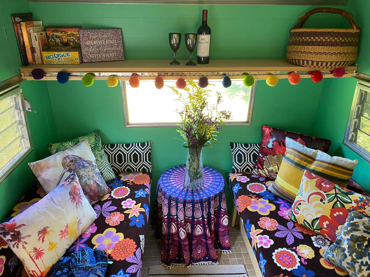 Glamping yang terbaik di Airstream Bambi 1964 kami bernama "Dotti ". Dotti panjangnya 16 kaki dan bisa tidur 2 orang dewasa. Nikmati glamping vintage di lingkungan yang paling tenang. Keluarlah untuk minum kopi di tempat tidur gantung, atau naik kayak pagi. Dotti adalah penawaran terkecil kami, namun memiliki BANYAK pesona. Termasuk patio besar tertutup dengan tempat tidur ayunan! Harap perhatikan bahwa Dotti tidak memiliki air panas. Progress Park Airstream resort memiliki 11 unit total di lokasi. 2 rumah, 8 aliran udara & rumah susun.