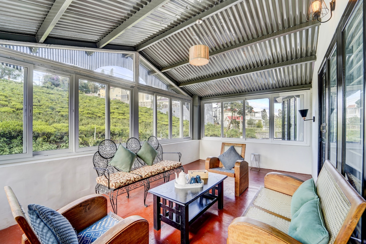 Bangun dengan pemandangan pegunungan Nilgiri yang menakjubkan di vila kaca kami dengan patio pribadi dan taman teh. Langkah keluar ke taman teh pribadi yang subur dan patio tertutup yang menawan dikelilingi taman bunga - sempurna untuk berjalan-jalan di pagi hari, istirahat chai, dan pemandangan matahari terbenam untuk bersantai. Makanan masakan rumah (sarapan, makan siang, dan makan malam) tersedia atas permintaan untuk masa inap yang benar-benar nyaman