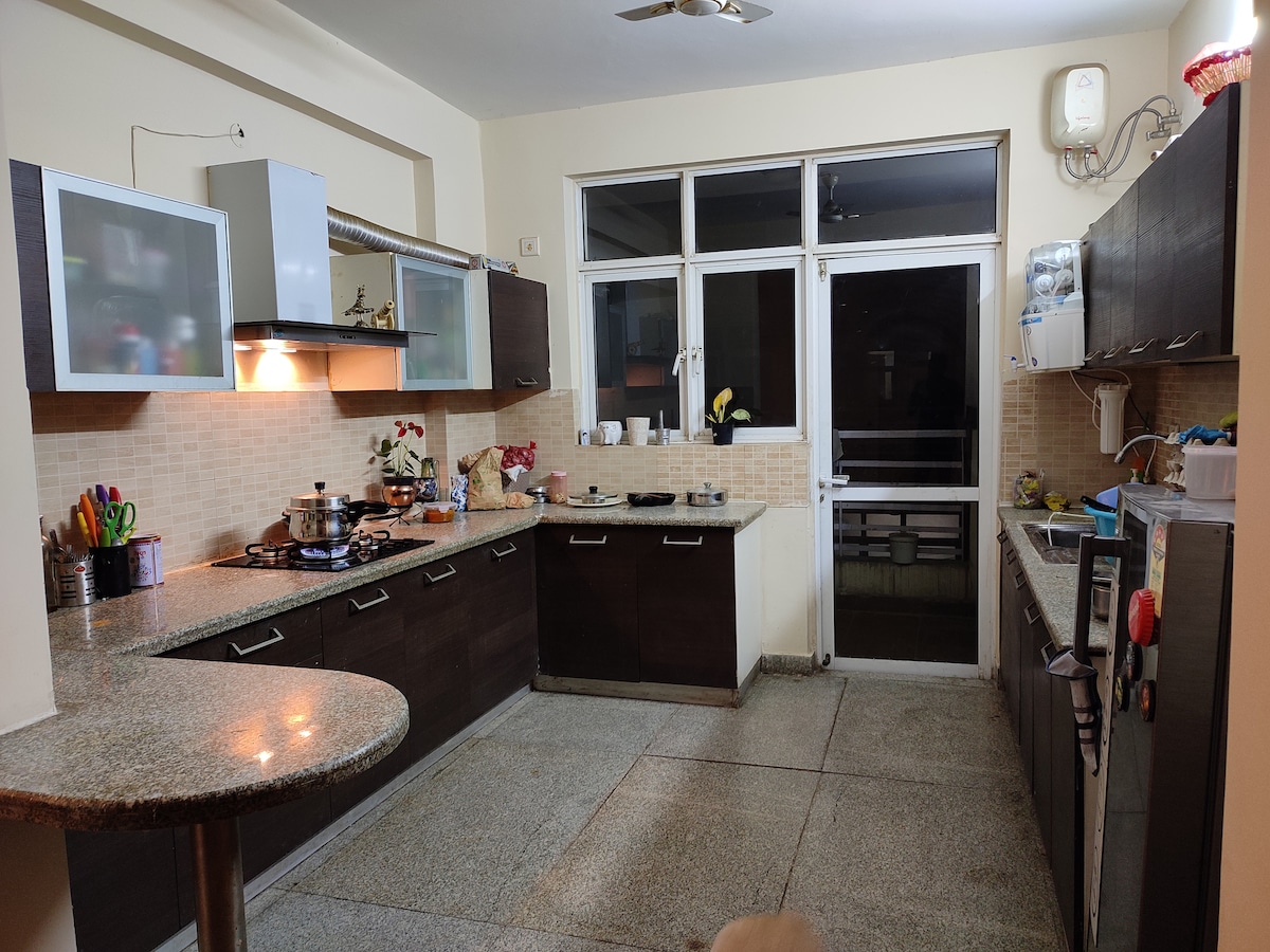 Relax in our cozy modern 1BHK apartment with sunrise view. Ideal for couples, solo travelers, or business guests, this fully furnished space includes a comfy queen bed, Wi-Fi, air conditioning, and a functional kitchen. Close to airport and transport. Safe, quiet, and perfect for short or extended stays! 30 min away from the airport. 30 min away from dwarka sec 21 (blue line) metro station. 40 min away from city center.