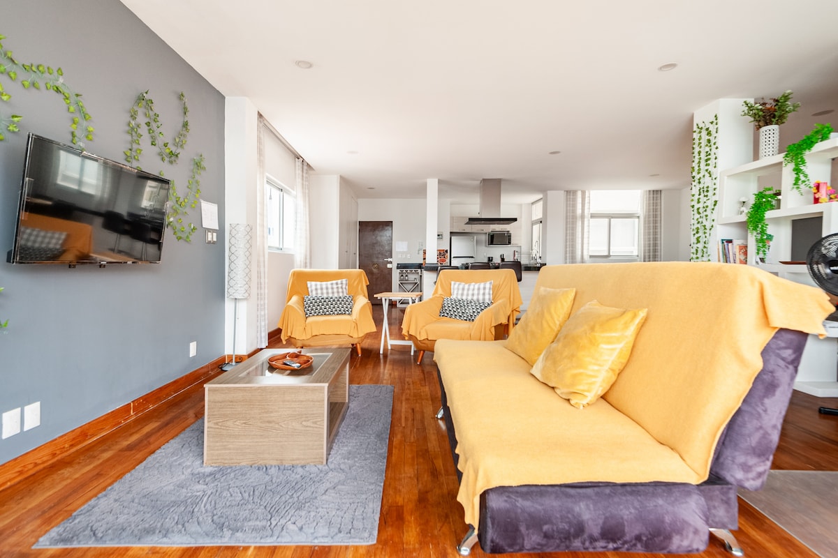 Selamat datang di Coyoacán! Loteng besar seluas 120 m2 yang terletak hanya 5 menit berjalan kaki dari pusat Coyoacán. Jalani pengalaman tempat terbuka yang tenang dan cerah ini, ideal untuk beristirahat atau bekerja dan didekorasi dengan benda - benda yang penuh dengan cerita. Loteng ini berlokasi di lantai tiga Casa Mavi, bekas pabrik yang direnovasi untuk menciptakan tempat menawan yang membuatnya unik. Tempat ini memiliki teras untuk digunakan bersama. Dengan opsi untuk tamu ketiga. Wifi 200 megabyte.