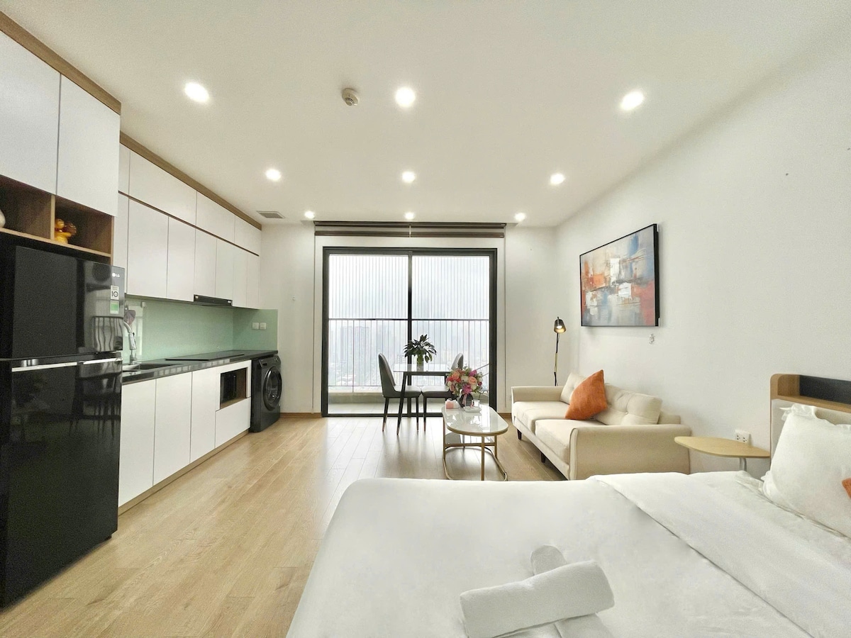 High-end apartment at Vinhomes Smart City with full amenities for couples, tourists or business travelers. Here you will rest and relax in a peaceful, luxurious space. Utilities include: 1. Indoor swimming pool 2. Outdoor swimming pool (seasonal) 3. Gym 4. Working Space 5. Shopping and entertainment at Vincom Mega Mall. 6. Check-in and take virtual photos at Japanese Garden 7. Stroll between the blue sea and white sand in the heart of Hanoi. 8. BBQ Party