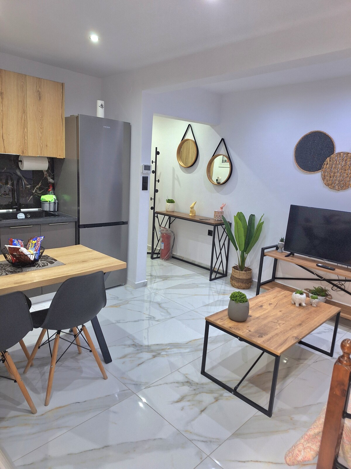 Studio Harmony. Apartemen kecil seluas 40sq.m. terletak di sebelah pusat kota,beberapa meter di belakang Stasiun Sidir/Miko Thessaloniki dan Metro. Cocok untuk masa inap yang nyaman 2 orang.(Kemungkinan orang ketiga)Direnovasi sepenuhnya. Tempat ini memiliki AC, gas alam untuk pemanas, pintu lapis baja, kecepatan internet 200mbps,dapur lengkap(kompor keramik dan oven built - in,pemanggang roti, ketel air, teko kopi Yunani, pembuat frappe), Smart TV,kamera di luar apartemen.