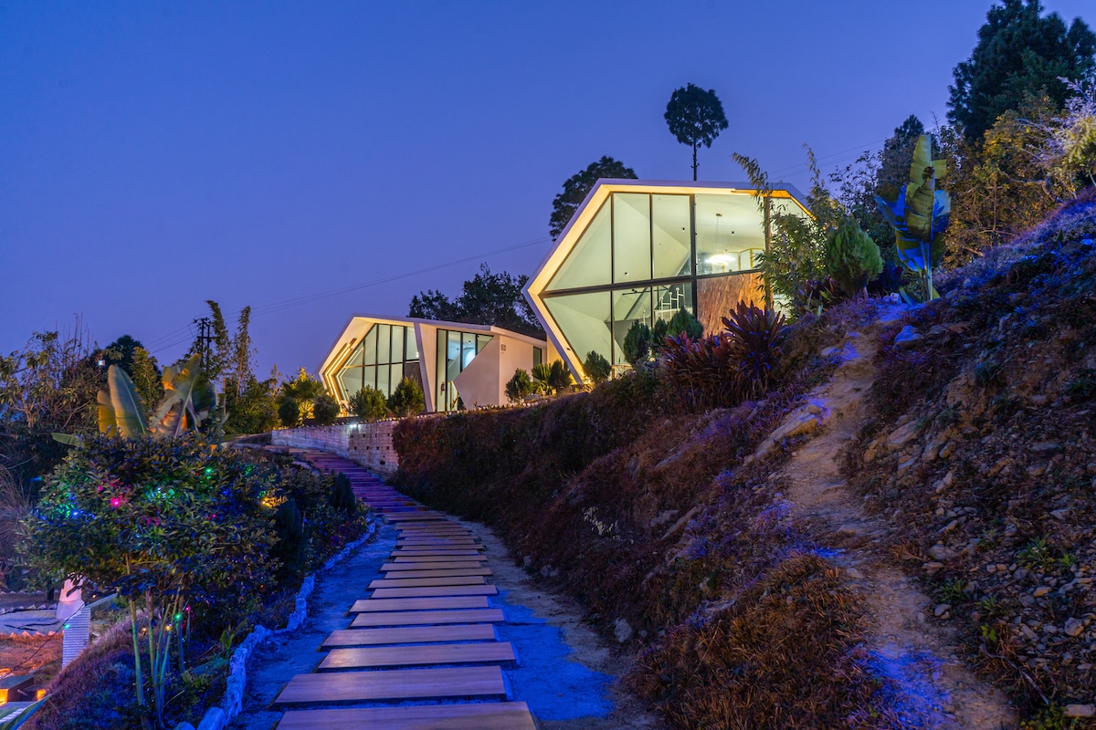 Luna Celeste is a fully serviced 3-pod private villa in Ranikhet, set amidst forests with sweeping valley views. Located close to Kasar Devi Temple and Binsar Wildlife Sanctuary, it features independent pods, open sit-outs, and bonfire and barbecue setups. Designed for privacy and slow living, it offers a peaceful, nature-connected stay in the Kumaon hills.
