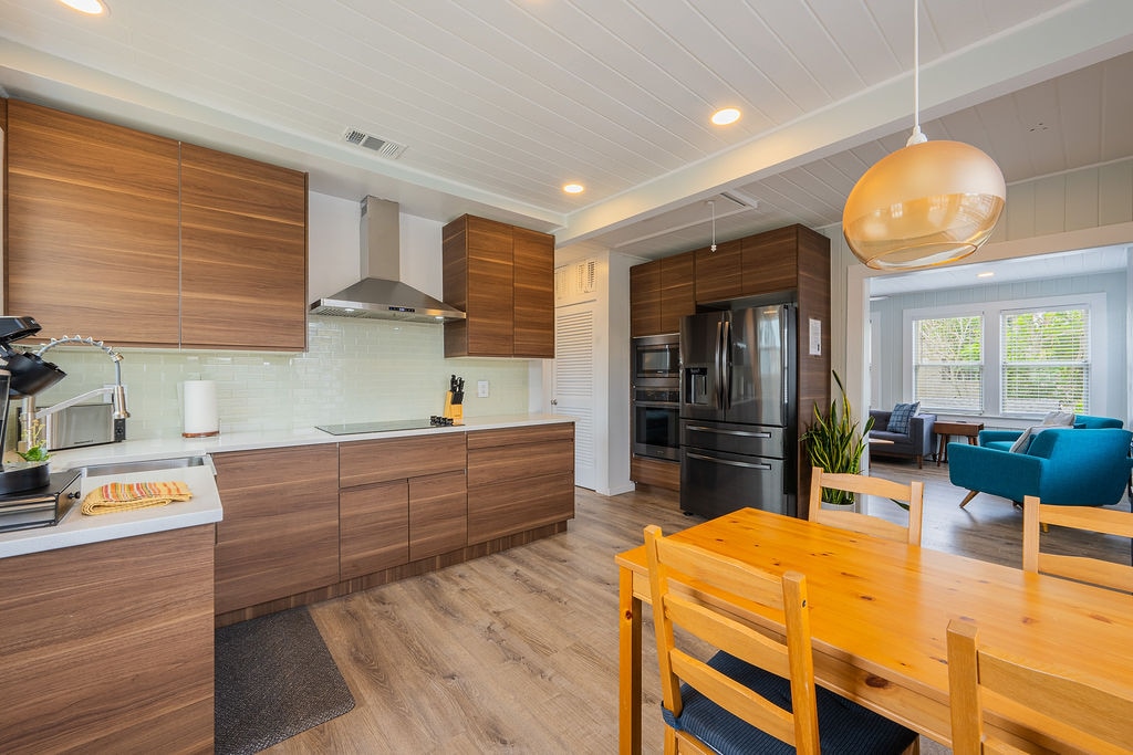 Have fun with the whole family at this stylish newly renovated home. Everything is modern & BRAND NEW! Enjoy a nice cozy evening in the backyard next to the fire. We have a king size bed in the master including a private FULL bathroom with a stand-up glass shower. The 2nd bedroom has a queen size bed next to the 2nd bedroom that has a garden tub. The living room couch pull outs & makes for queen bed. Each room has a smart tv with all your favorite shows.