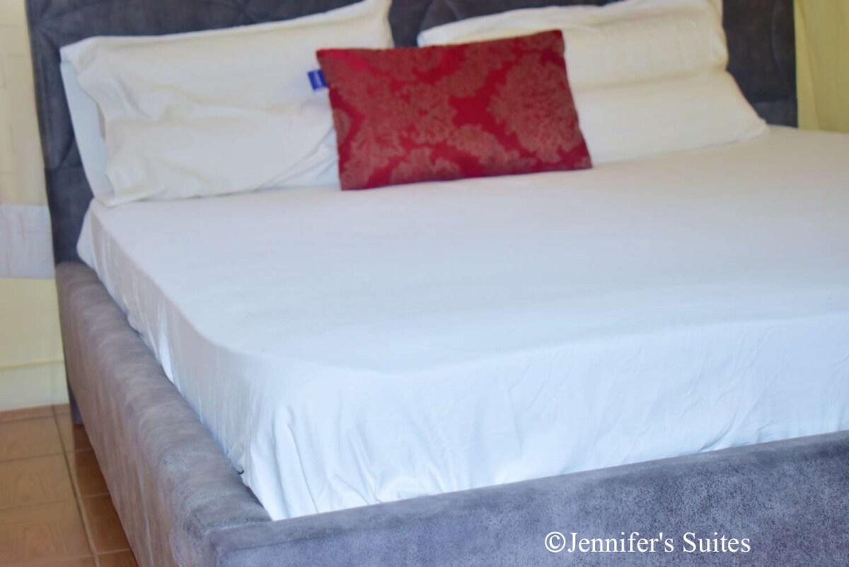 Unwind with ease in this peaceful, serene, and centrally-located haven. Relax in the cozy bedroom featuring a double bed, fresh linens, and a large window that invites in natural light. The room is equipped with a kitchenette, a smart TV, and fast Wi-Fi for your convenience. Situated in a private compound with wheelchair accessibility. Parking is available, and a reliable warm shower awaits you. The compound is well-maintained and secured by 24-hour security for your safety and peace of mind.