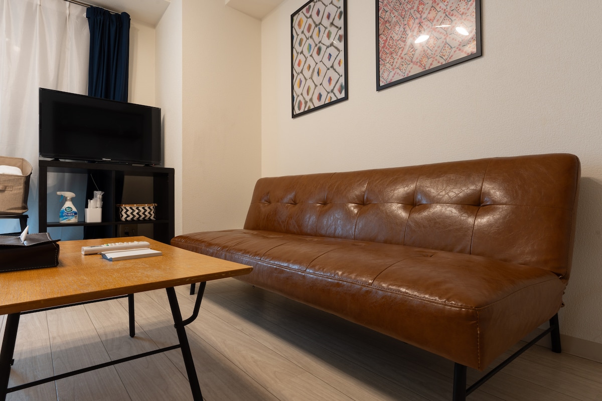 A studio apartment fully equipped with essential living items! In an area that mixes urban spaces, dining districts, & old neighborhoods. **SAFE** -Post office on the 1st floor! -Intercom with monitor / Additional swing bar lock / etc. **CONVENIENT** -Right in front of subway exit! -24/7-open convenience store across the street! -6 supermarkets & 8 convenience stores within 5 min walk! -3 min walk to the longest shopping street in Japan! -3 min by train to Umeda / 15 min to Doutonbori.