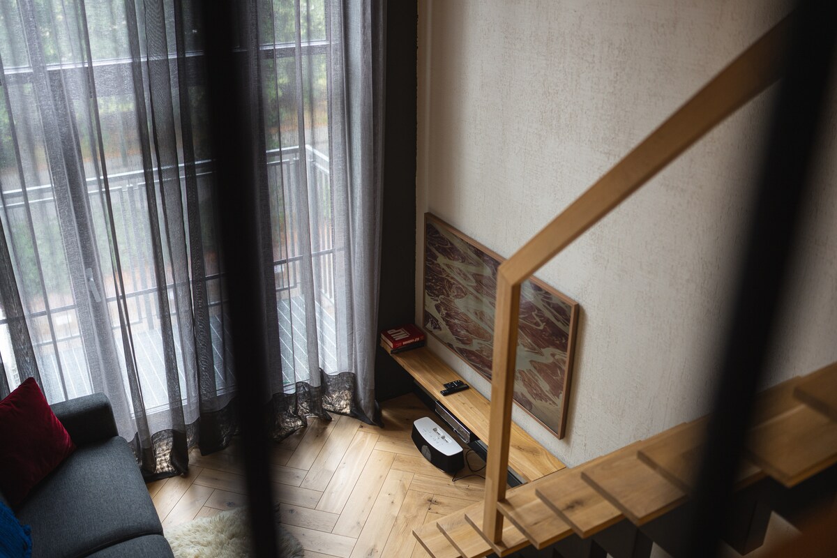 Nikmati waktu Anda dengan penuh gaya di loteng pusat kota ini. Loteng dan seluruh bangunan baru saja direnovasi dengan jendela setinggi 4 meter. Tinggi langit-langit hampir 5 meter. Jarak ke pusat kota tua - Teatras Square 12 menit berjalan kaki.