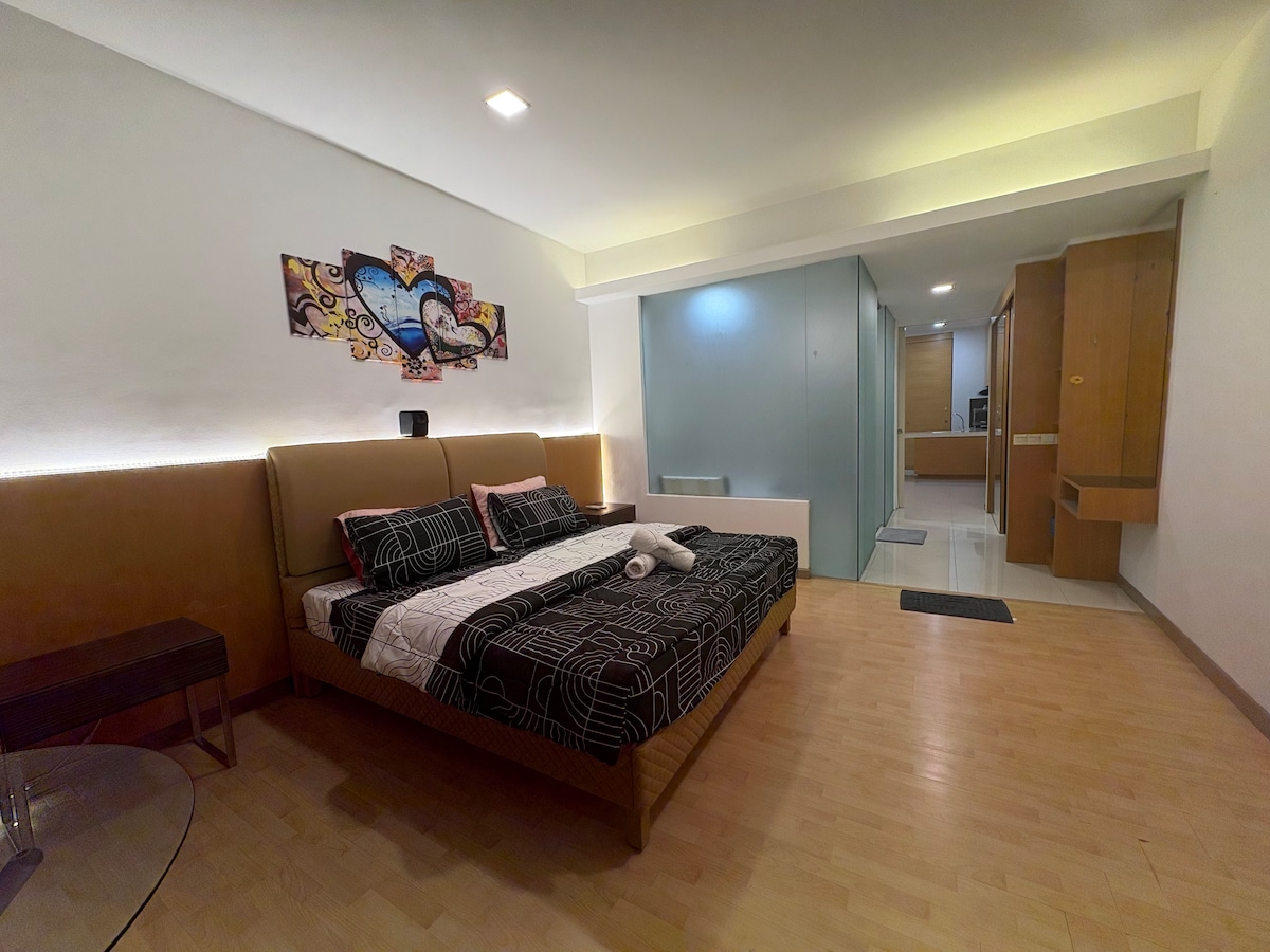 📍Pertama Residency Welcome to my New Bnb - Moonrise City! This studio is newly set up with lots of love, combines contemporary decor with modern amenities and an experience all can enjoy especially Jacuzzi moment with your love & 120” projector screen w/Netflix. This unique place has a style all its own, it offers a cozy, clean, quiet & refreshing stay environment for couples. Come and experience in the new bnb! See you.