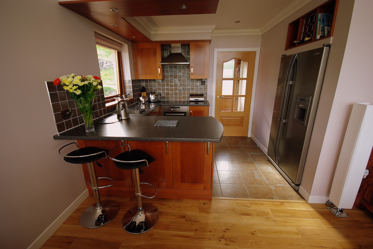 The Wee Wooden Yurt di Caolas Gallery adalah rumah bundar kayu asli beratap hijau dengan jendela gambar yang memberikan pemandangan laut tanpa gangguan ke Isle of Scalpay dan South East Harris. Fitur-fitur yang ada meliputi jendela atap kubah pusat, kamar mandi, dapur, kursi yang nyaman, dan kompor kayu bakar, dan tentu saja tempat tidur double. Properti ini memiliki aspek selatan dengan banyak cahaya alami, terisolasi dengan baik, hangat dan nyaman
